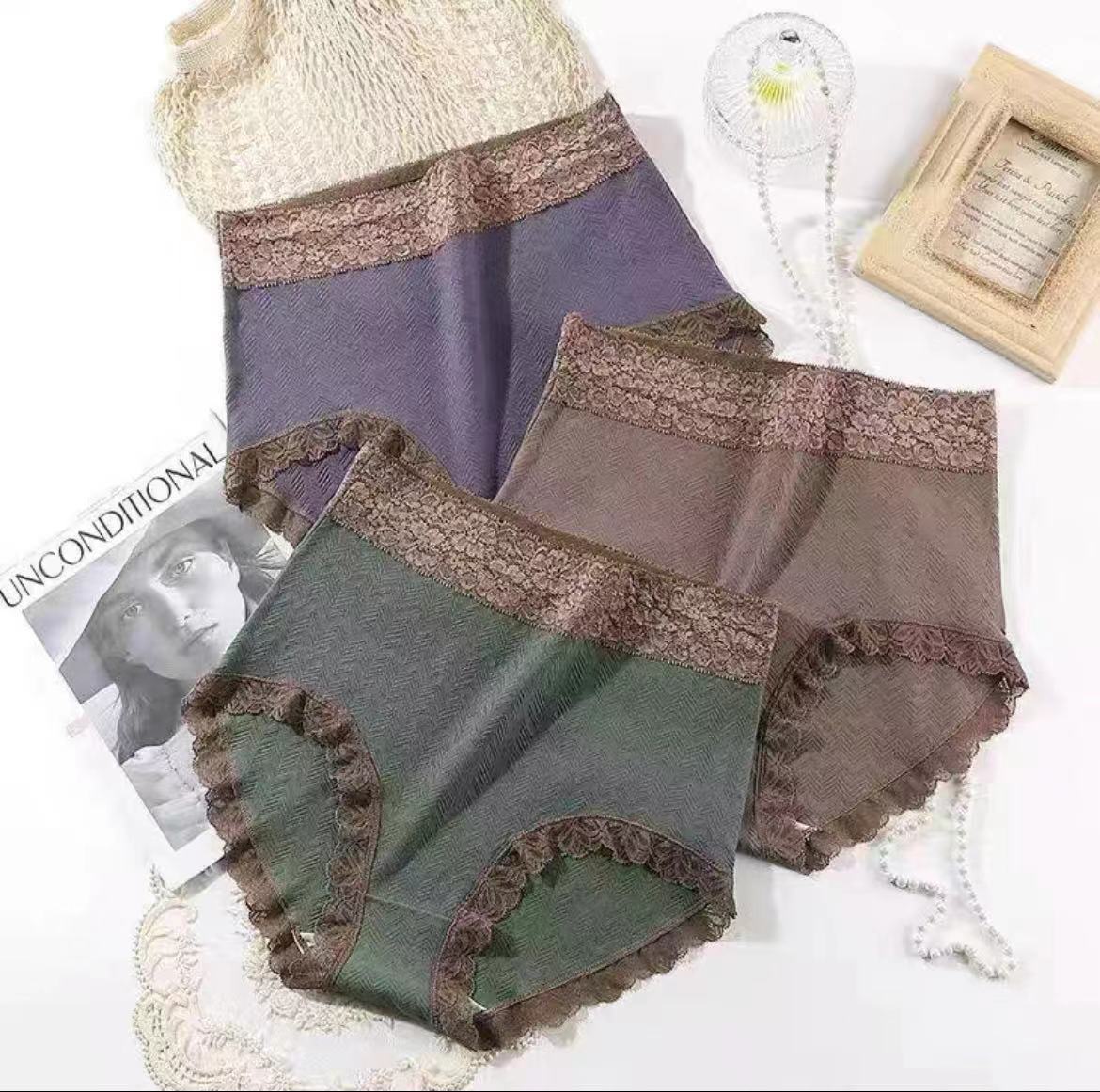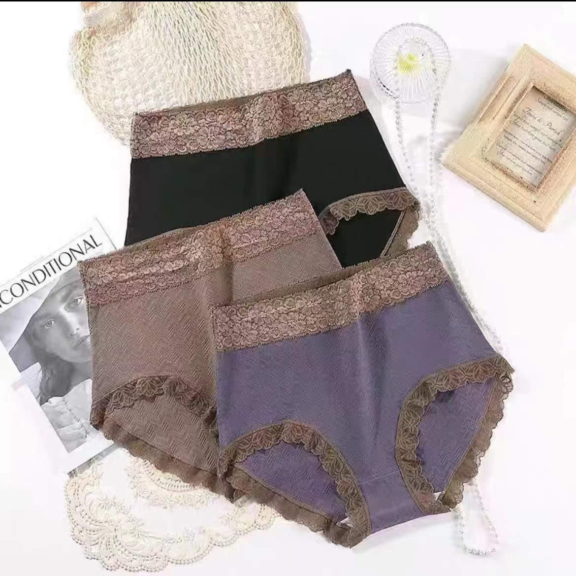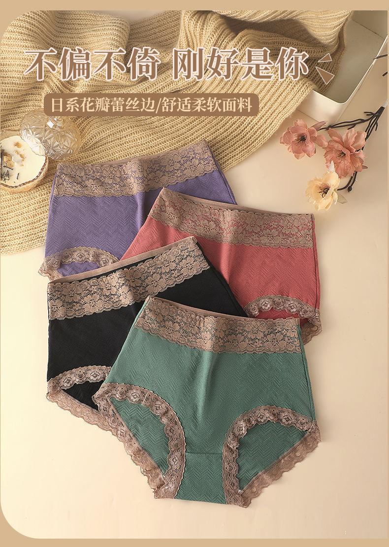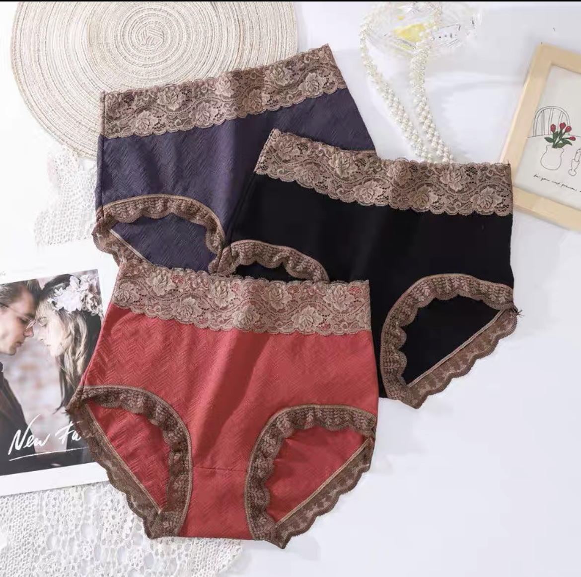 6 순면 항균 속옷 여자의 하이 웨이스트 100% 면 플러스 사이즈 레이스 섹시한 배꼽 여성의 팬티 가을과 겨울스토어 가기