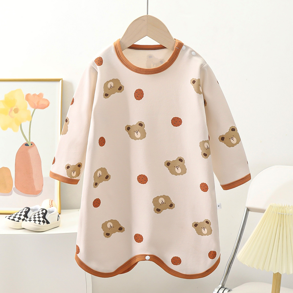 • 베이지 개구리 면 싱글 레이어 잠옷