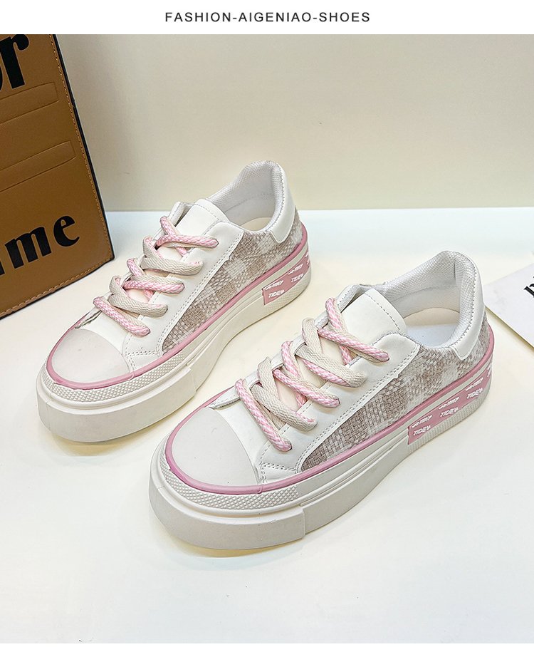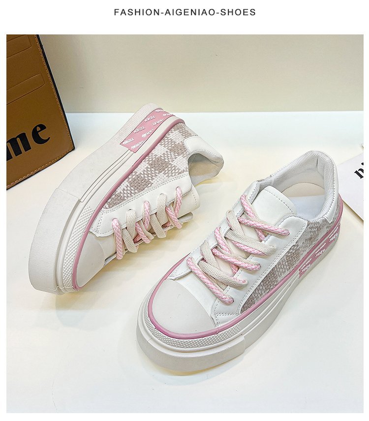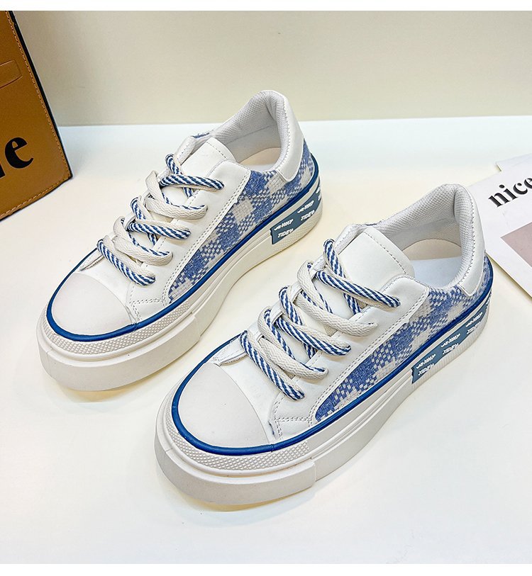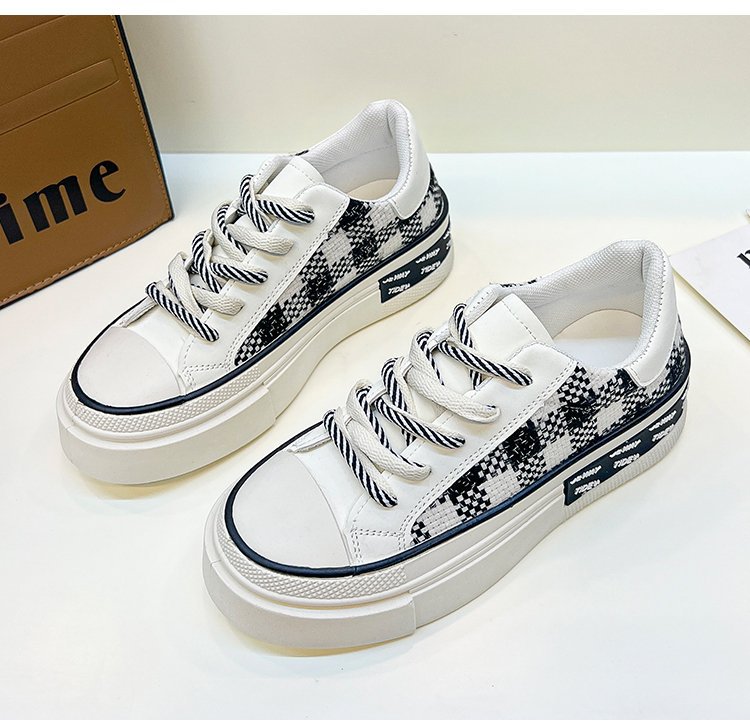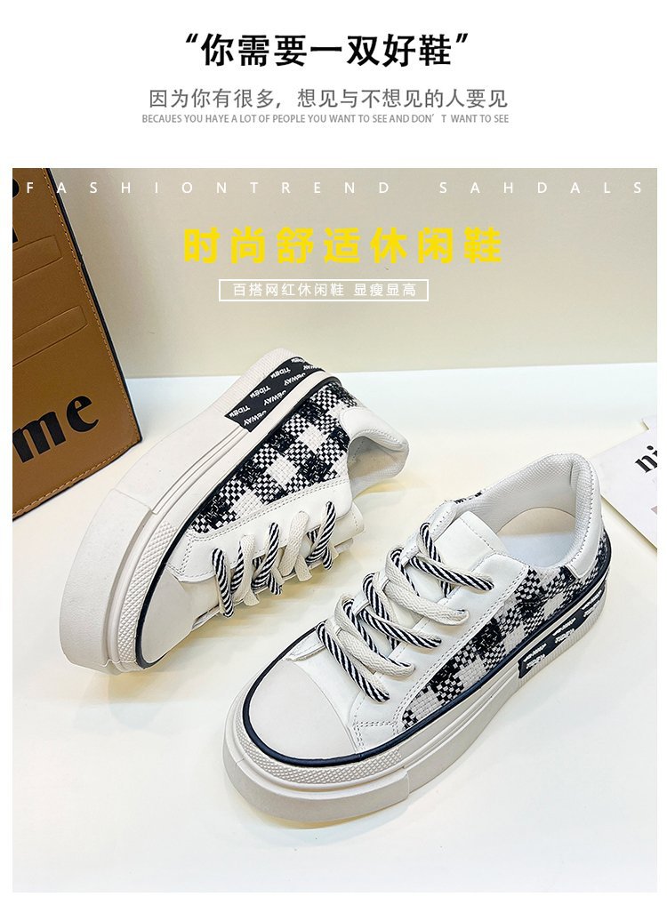 여성을위한 흰색 신발 2022 가을 새로운 플랫폼 플랫폼 플랫폼 격자 무늬 싱글 레이어 신발 라운드 토 레이스 업 캐주얼 스포츠 싱글 레이어 신발스토어 가기
