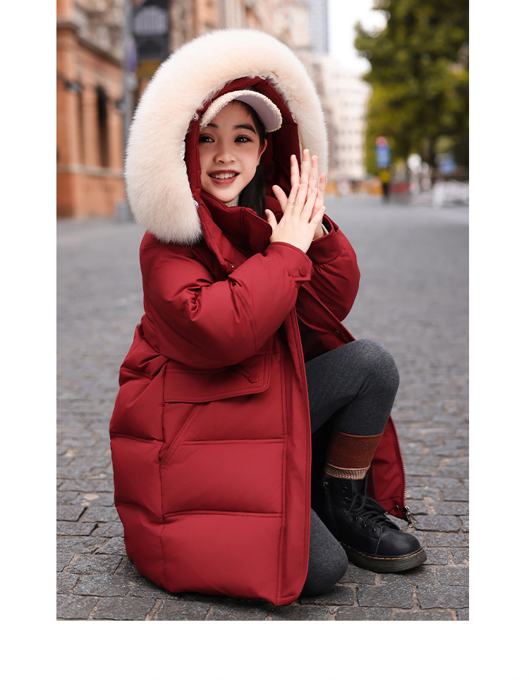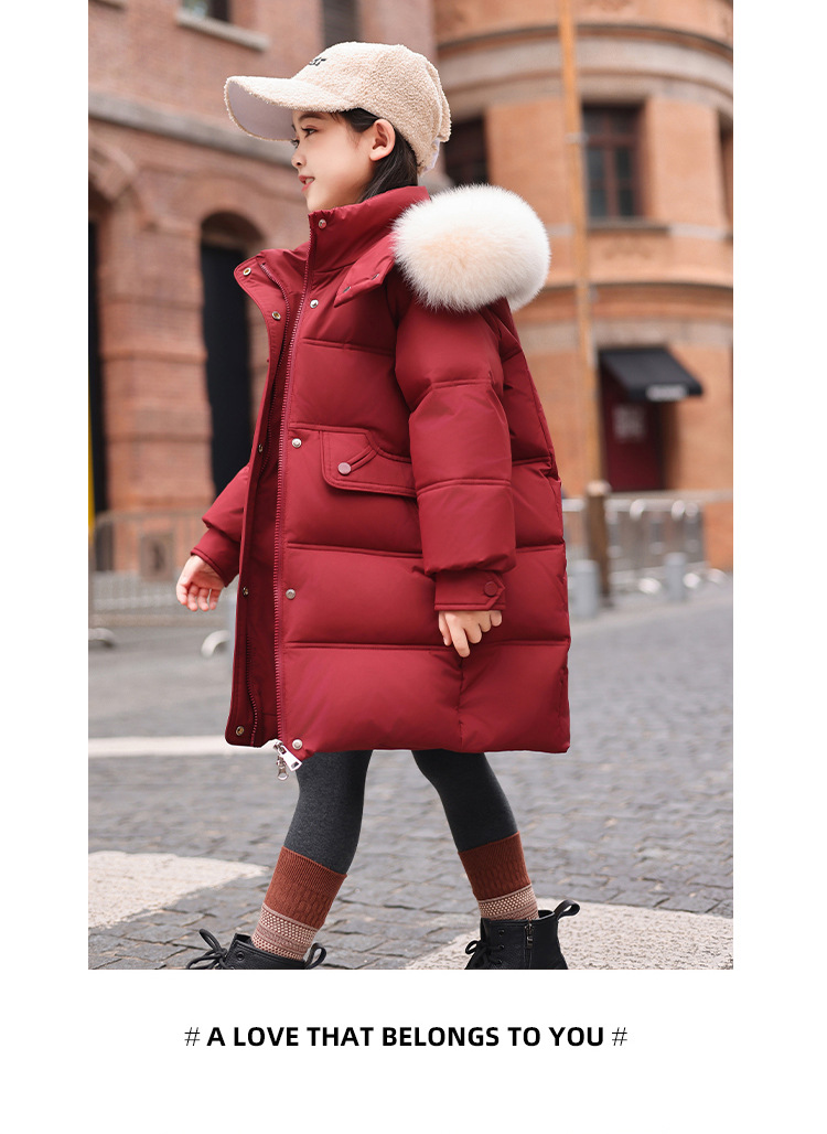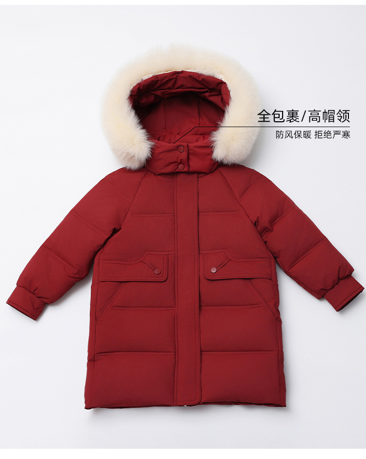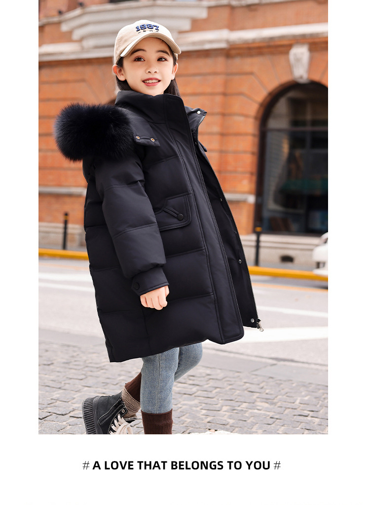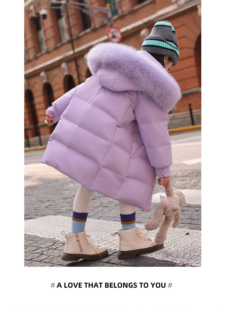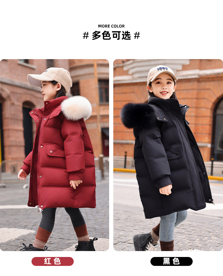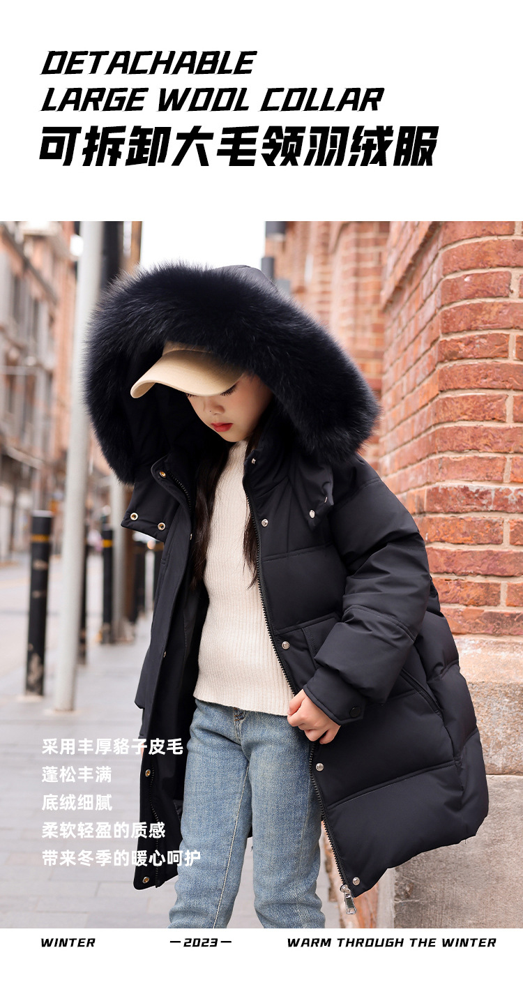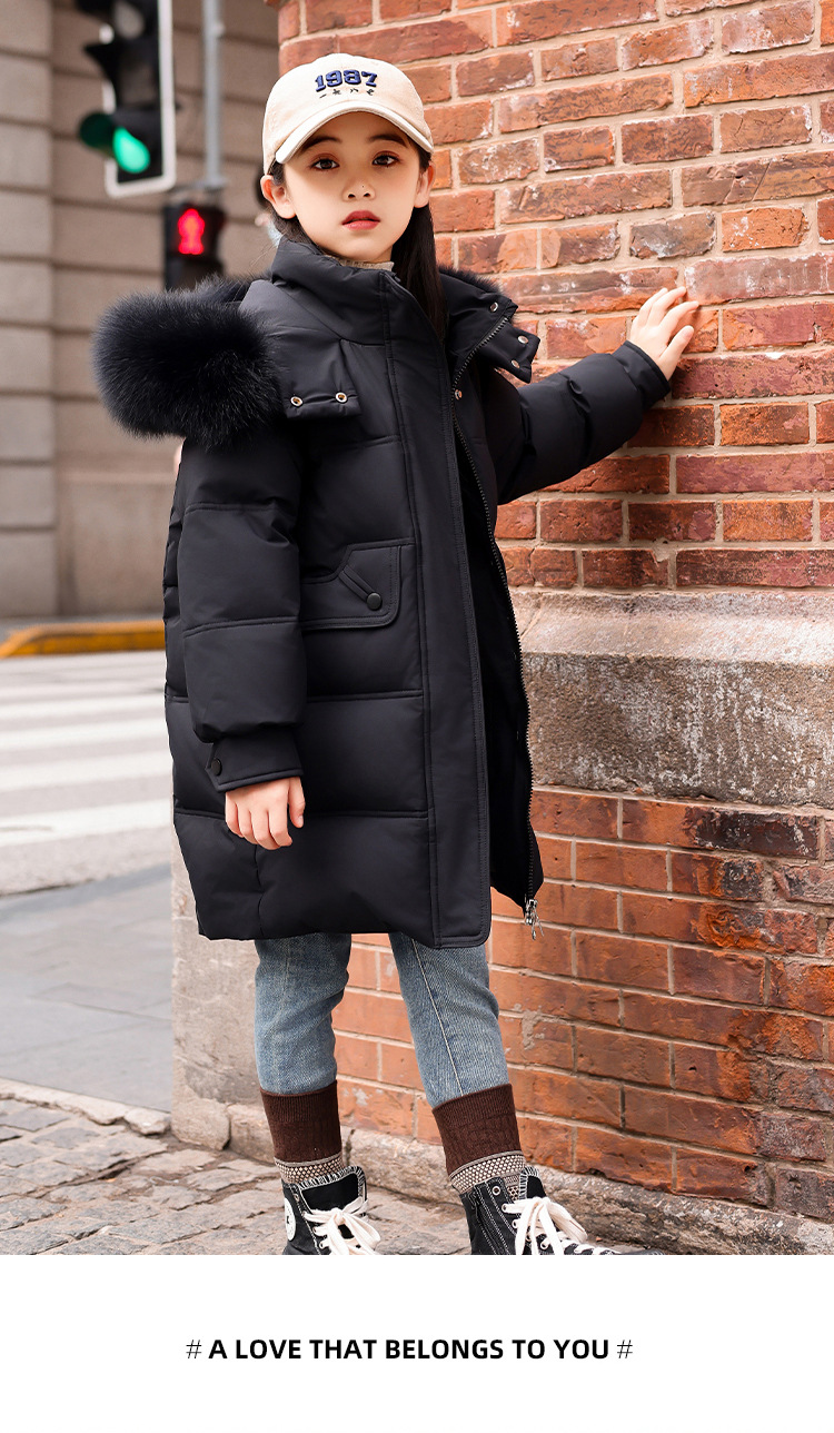 소녀를위한 한국 스타일 어린이 다운 재킷 중간 및 긴 겨울 흰색 오리 다운 후드 소녀 중간 및 큰 어린이의 두꺼운 서양 스타일 코트