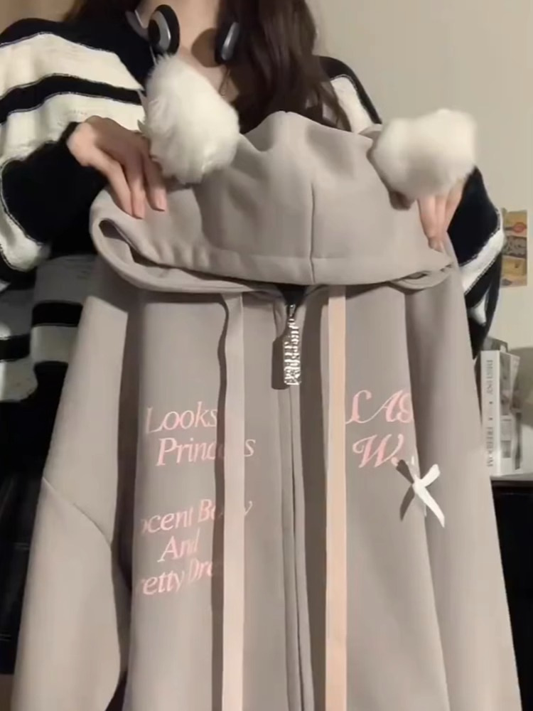 야옹 [귀여운 고양이 귀] 달콤한 쿨 귀 후드 가디건 스웨터 남성과 여성의 대형 느슨한 커플 재킷