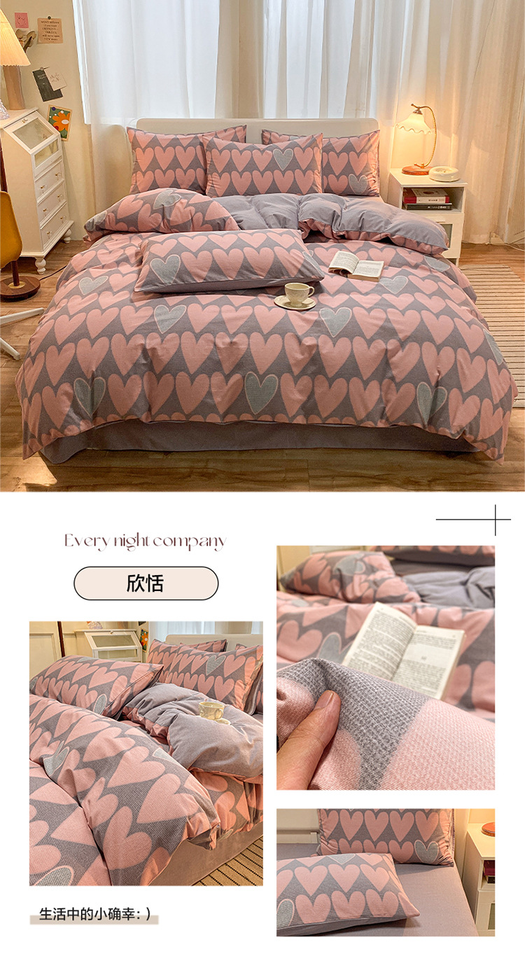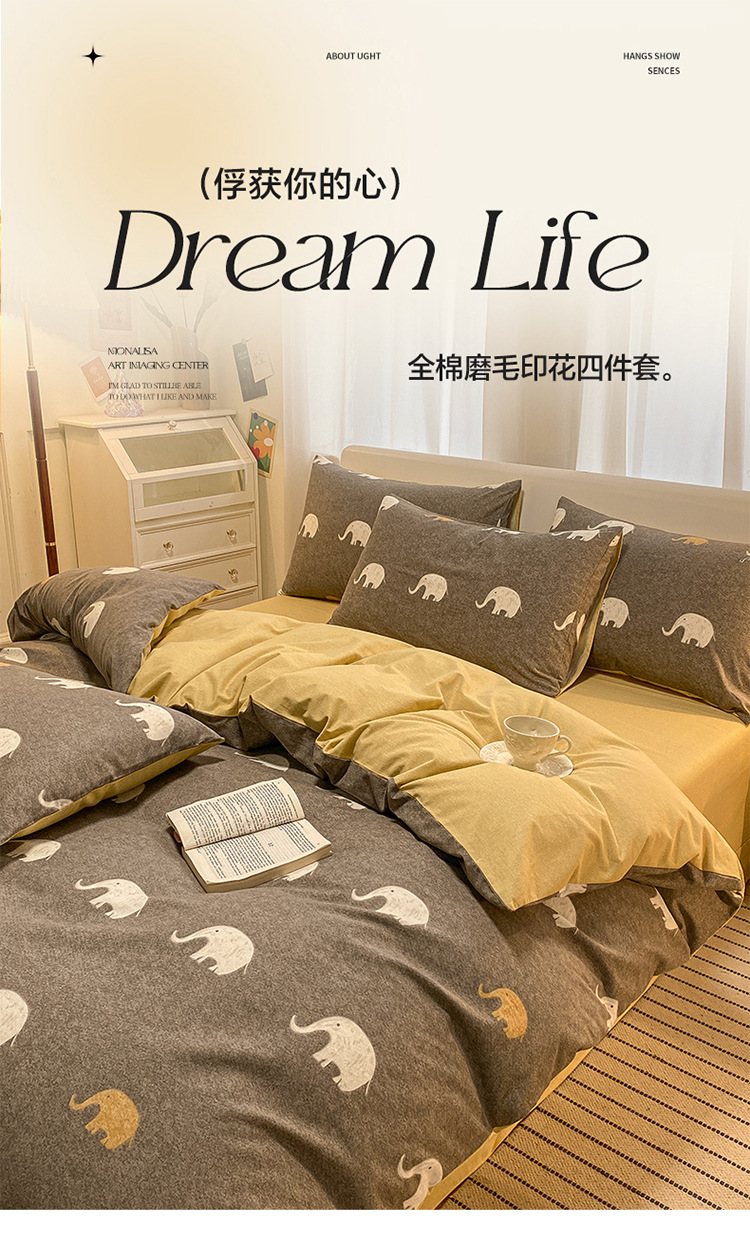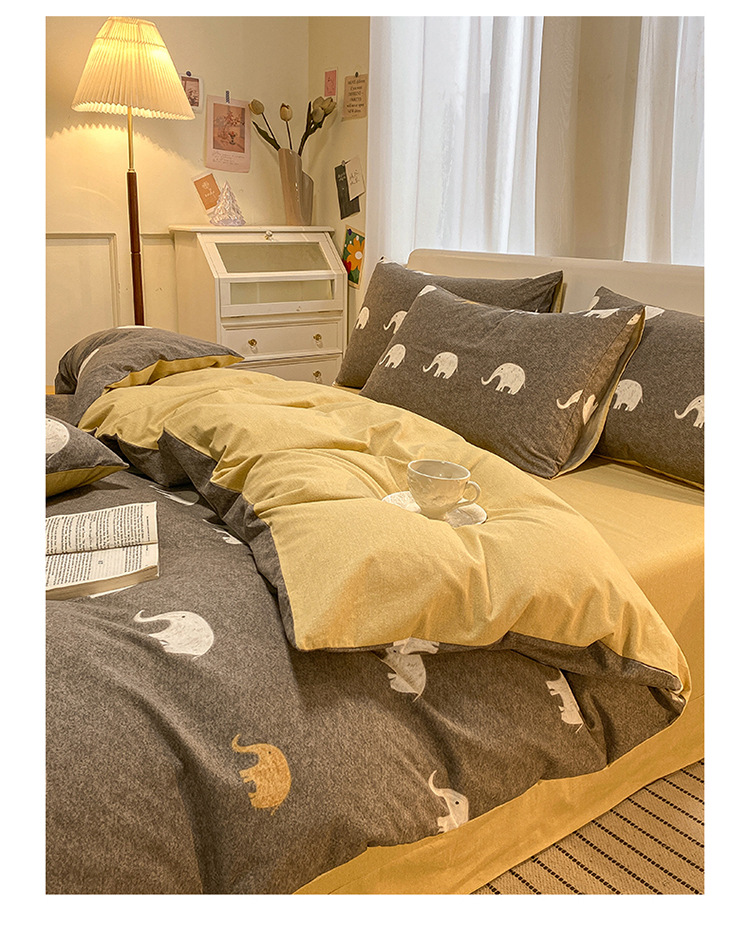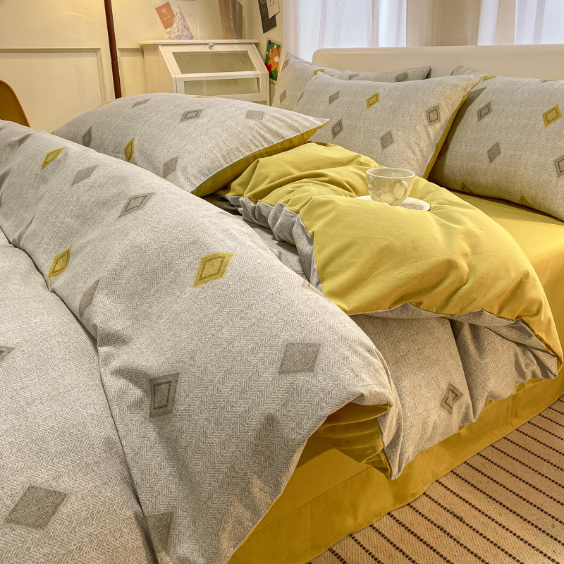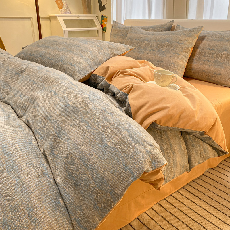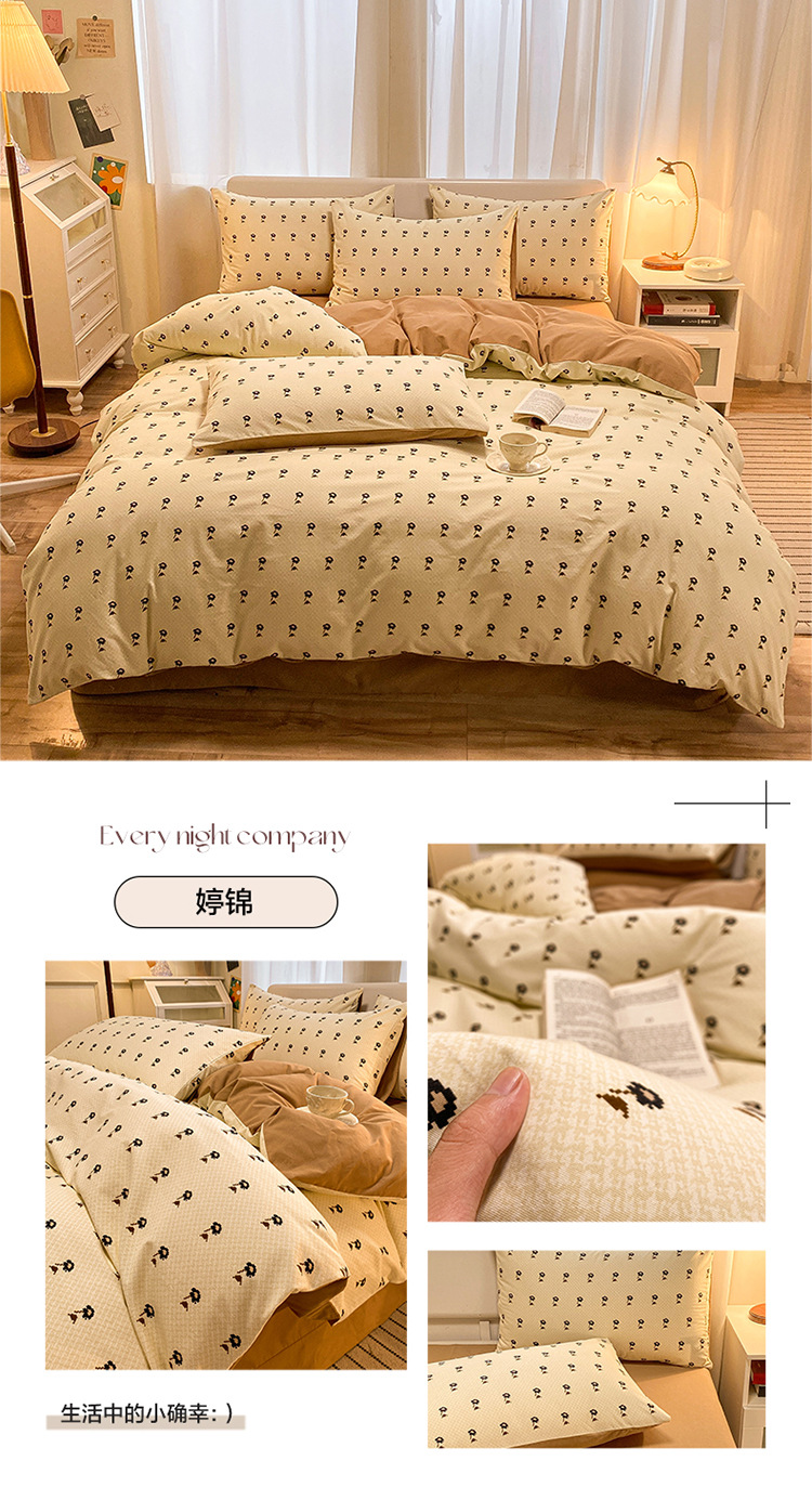 가을과 겨울 두꺼운 면 샌딩 4 종 세트 면 기숙사 3 종 세트 심플 스타일 이불 커버 침구 필링 없음