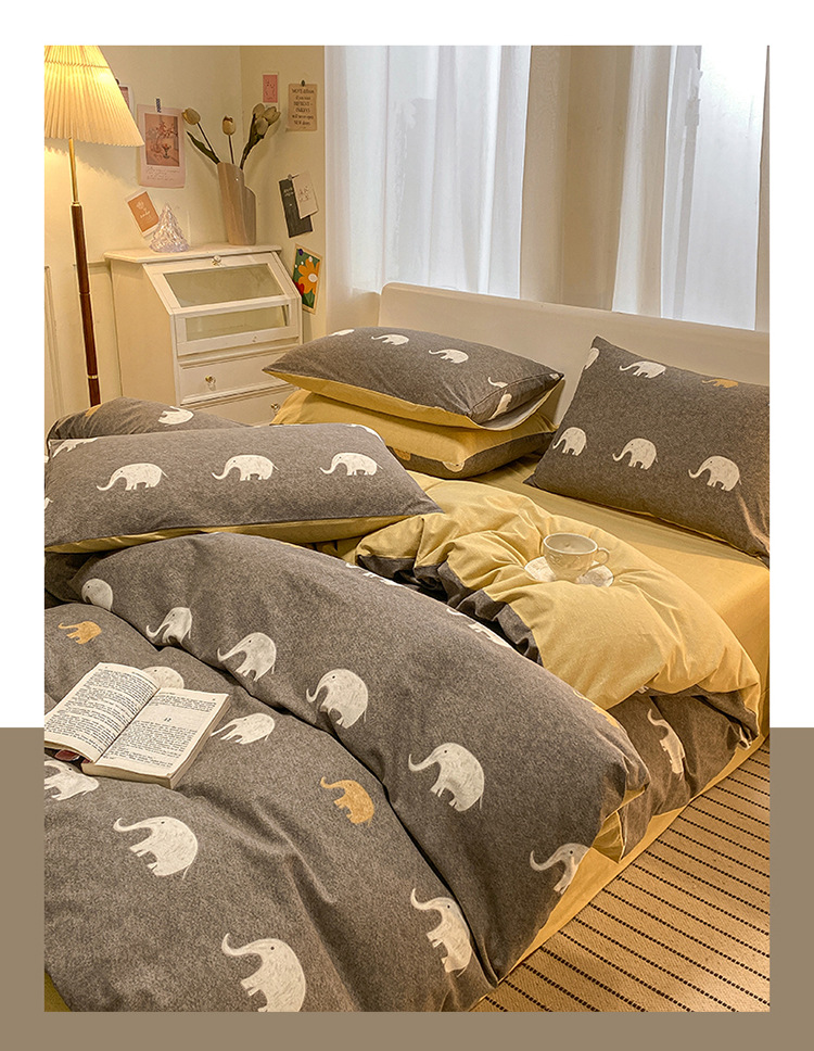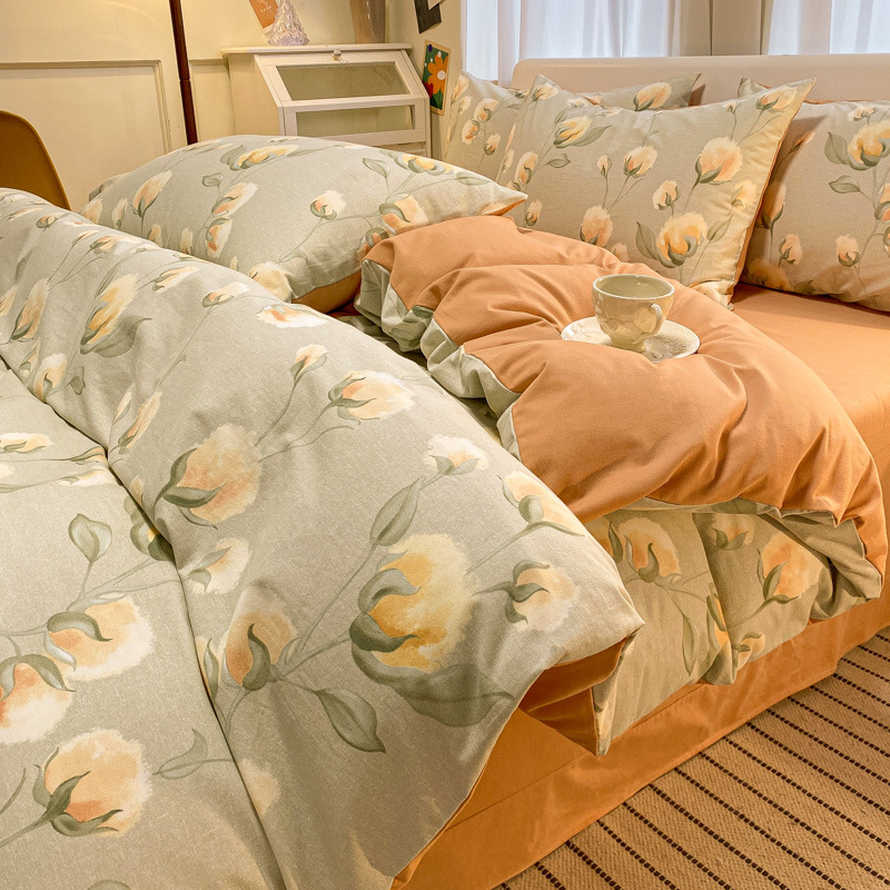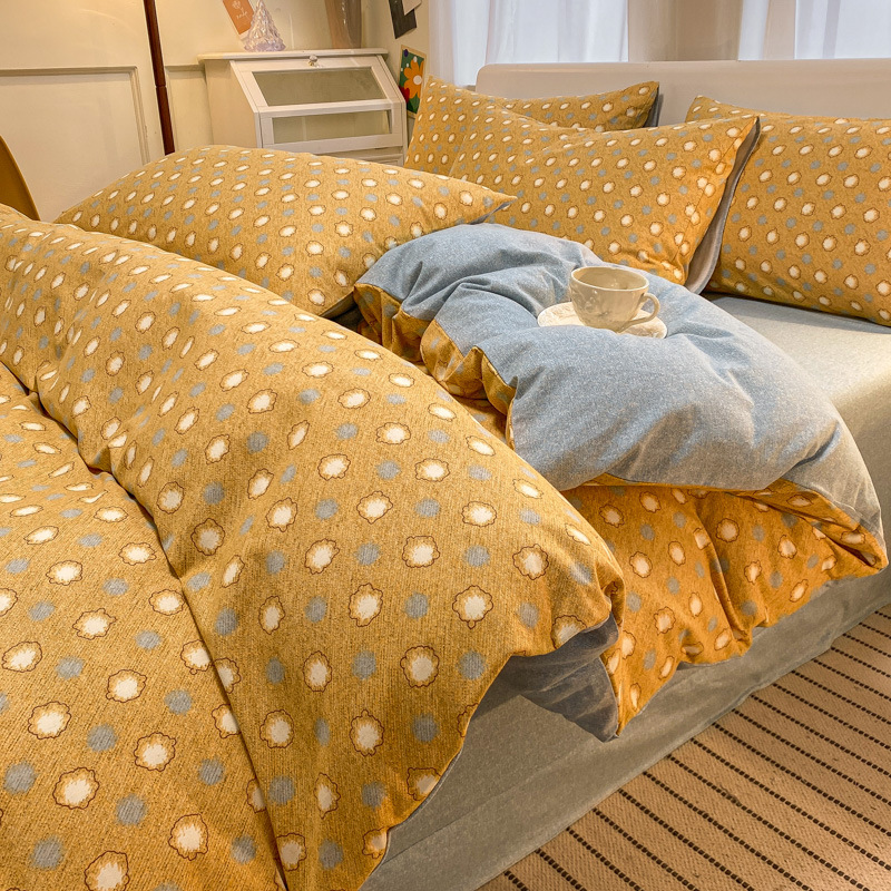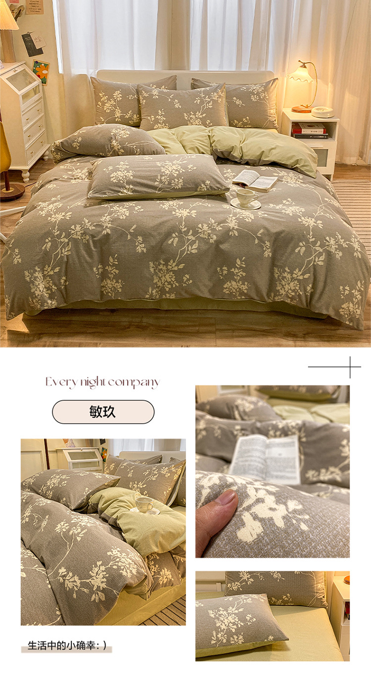 가을과 겨울 두꺼운 면 샌딩 4 종 세트 면 기숙사 3 종 세트 심플 스타일 이불 커버 침구 필링 없음스토어 가기