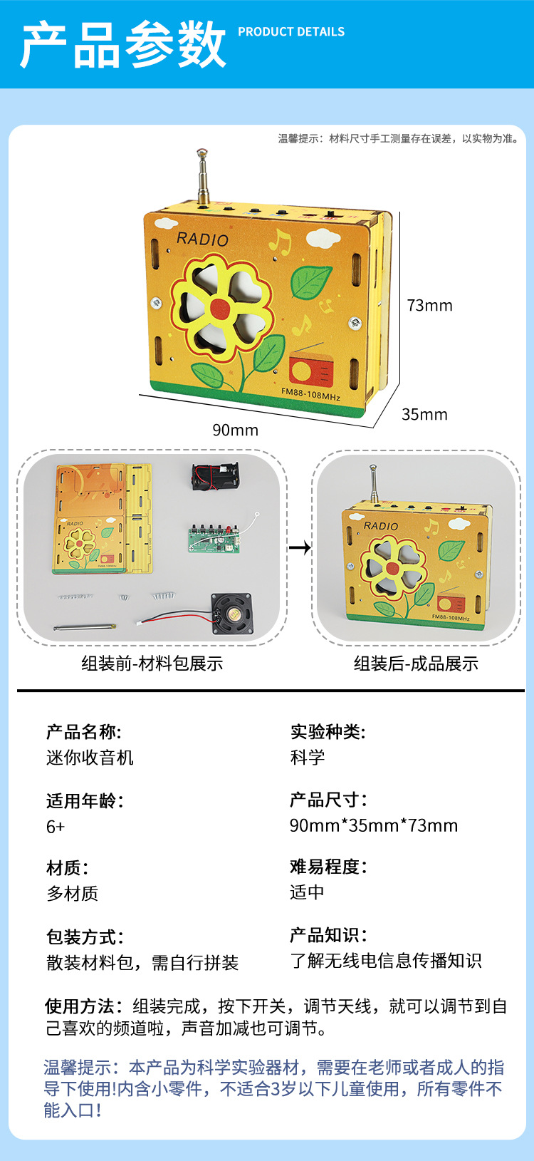 과학 기술 작은 만들기 교육 어린이 장난감 DIY 라디오 학생 수제 모델 과학 실험 과학 및 교육 프론티어