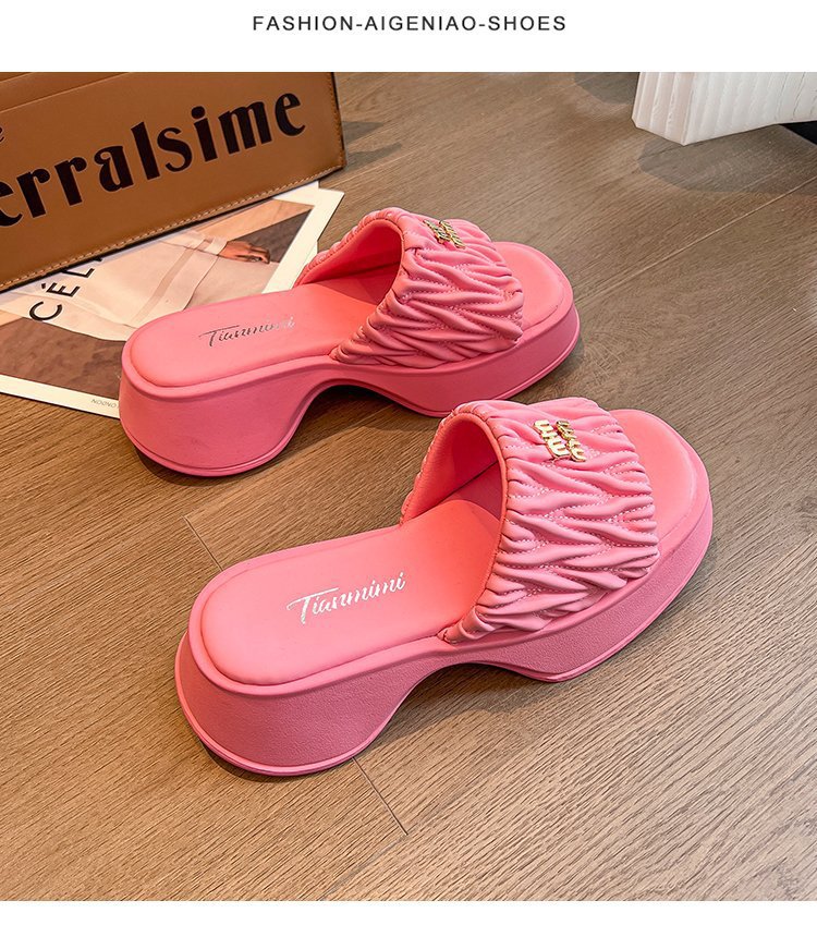여성의 두꺼운 밑창 대외 무역 슬리퍼 2023 여름 새로운 사각형 발가락 캔디 컬러 머핀 주름 캐주얼 여성용 야외 슬리퍼 증가스토어 가기
