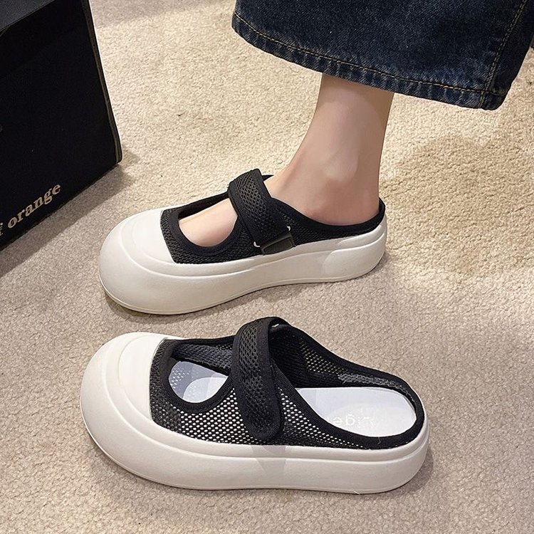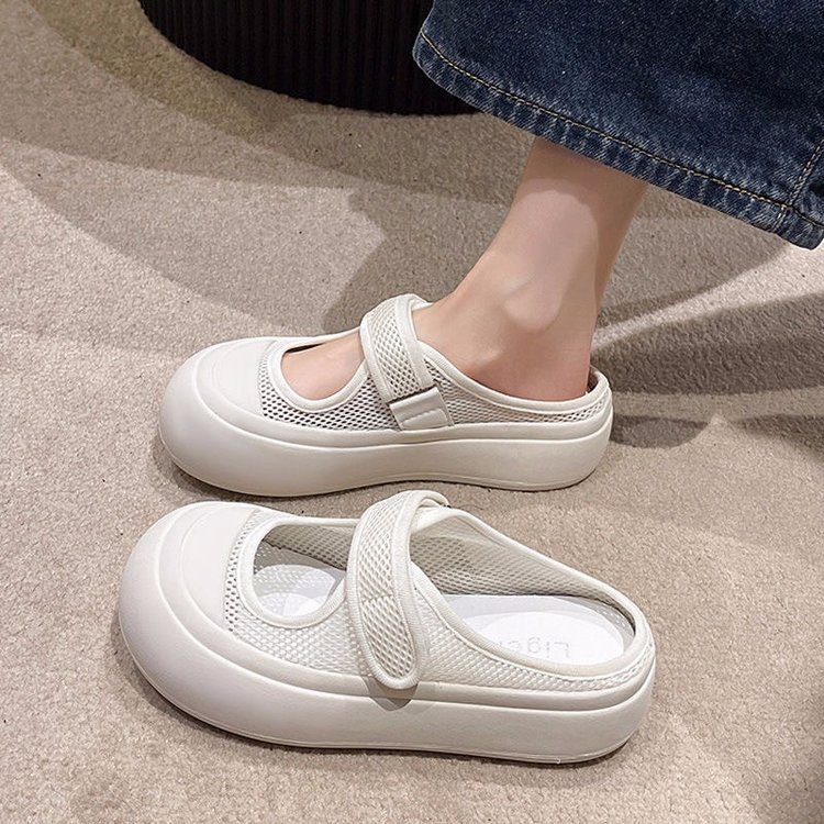 2023 여름 새로운 플랫폼 부드러운 바닥 큰 머리 여성의 흰색 신발 메쉬 통기성 벨크로 닫힌 발가락 반지지 신발