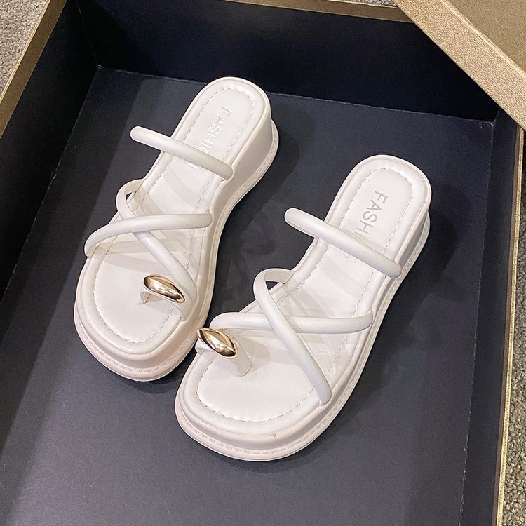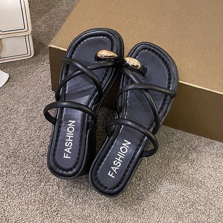 발가락 커버가있는 여성용 두꺼운 밑창 슬리퍼 2023 여름 새로운 한국 스타일 세련된 캐주얼 슬리퍼 캐주얼 여성 신발 도매