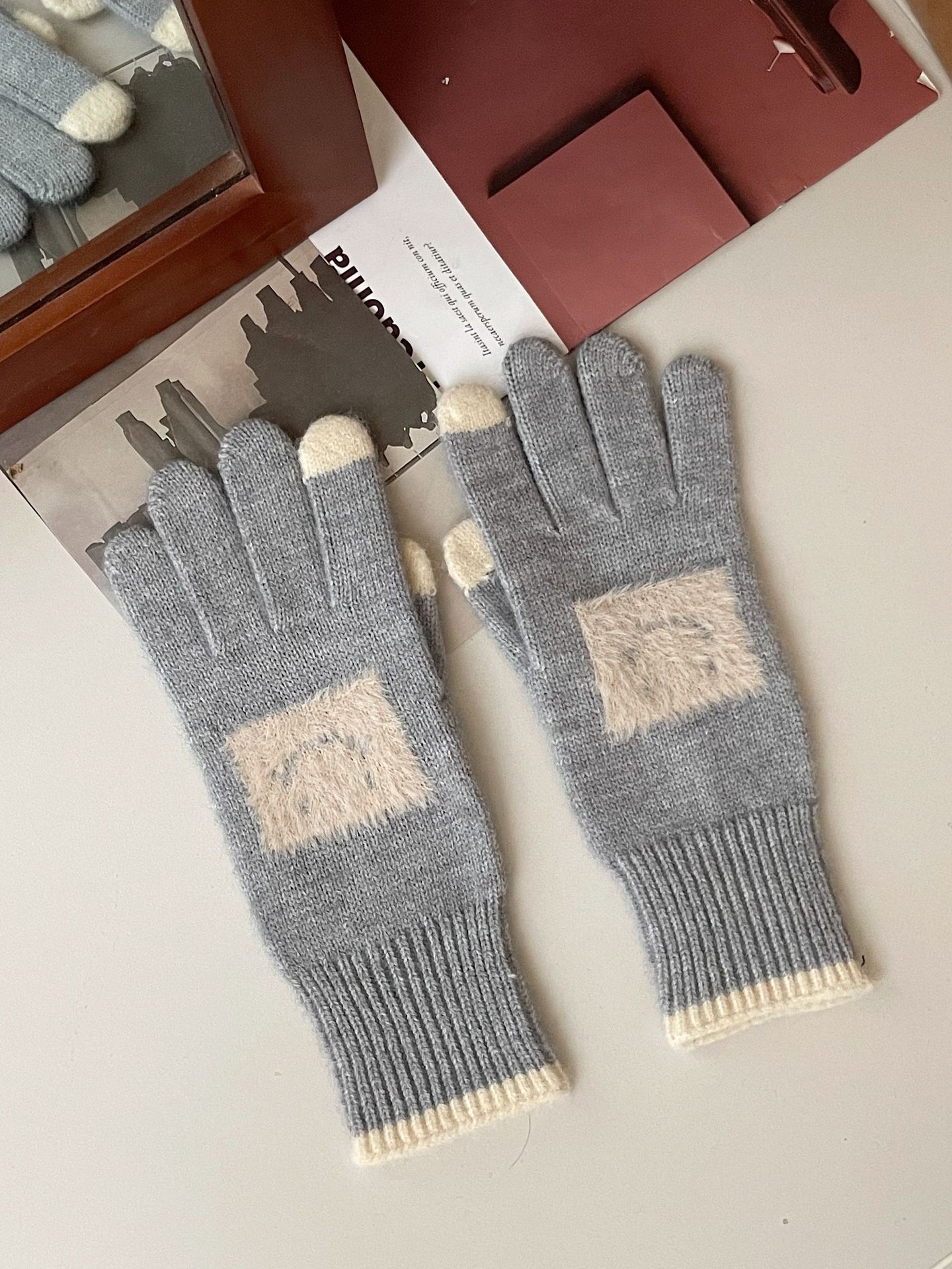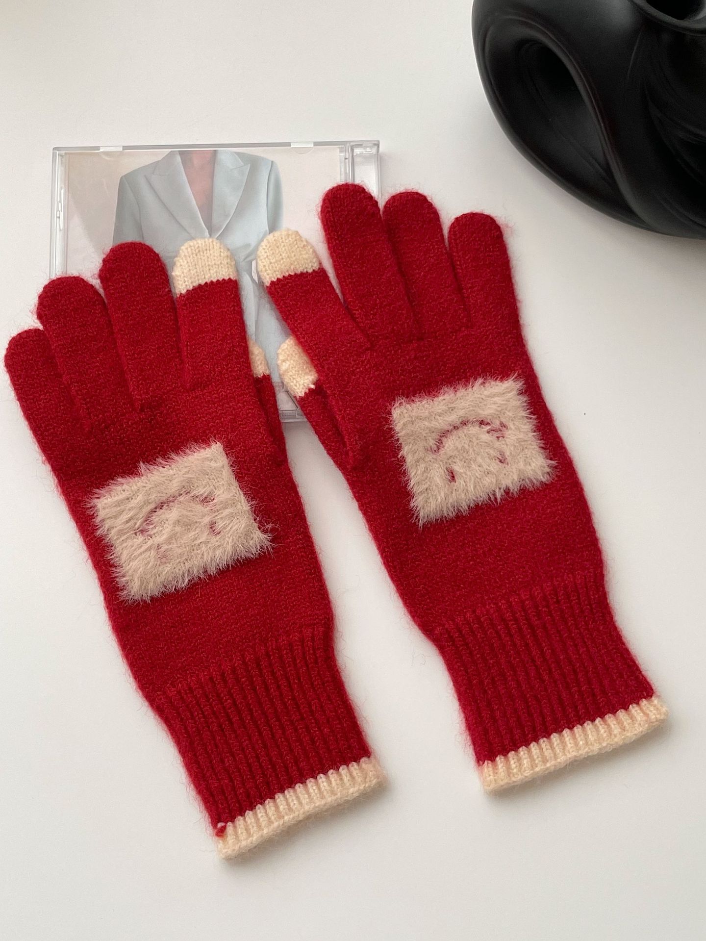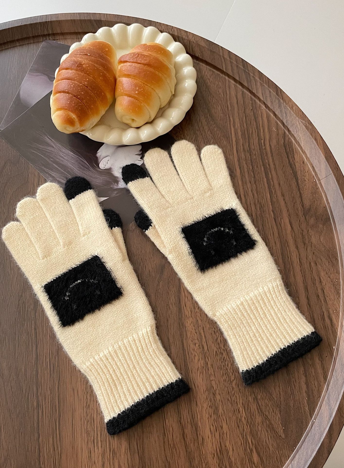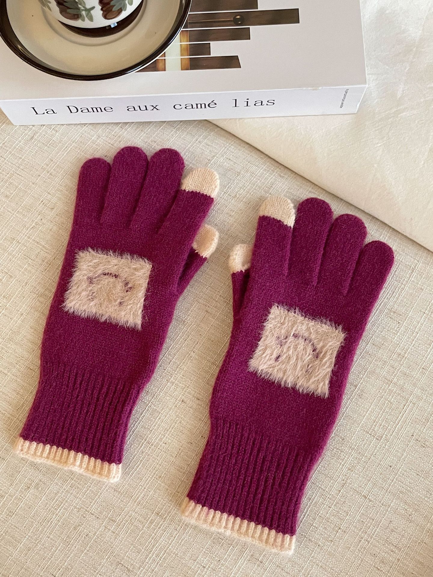 손가락 장갑 봄과 가을 따뜻한 한국의 새로운 양모 장갑 2 색 스티치 귀여운 웃는 얼굴 노출 손가락 터치 스크린 장갑