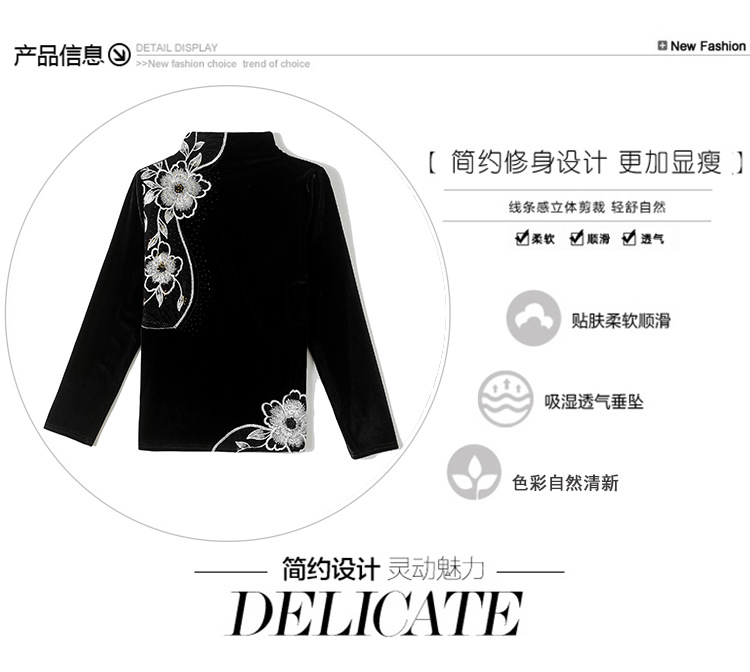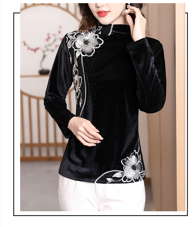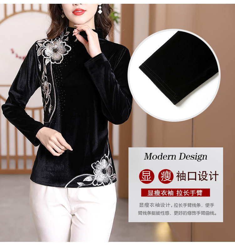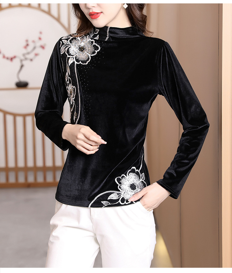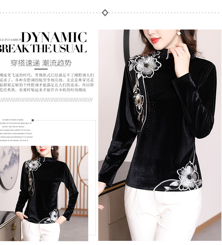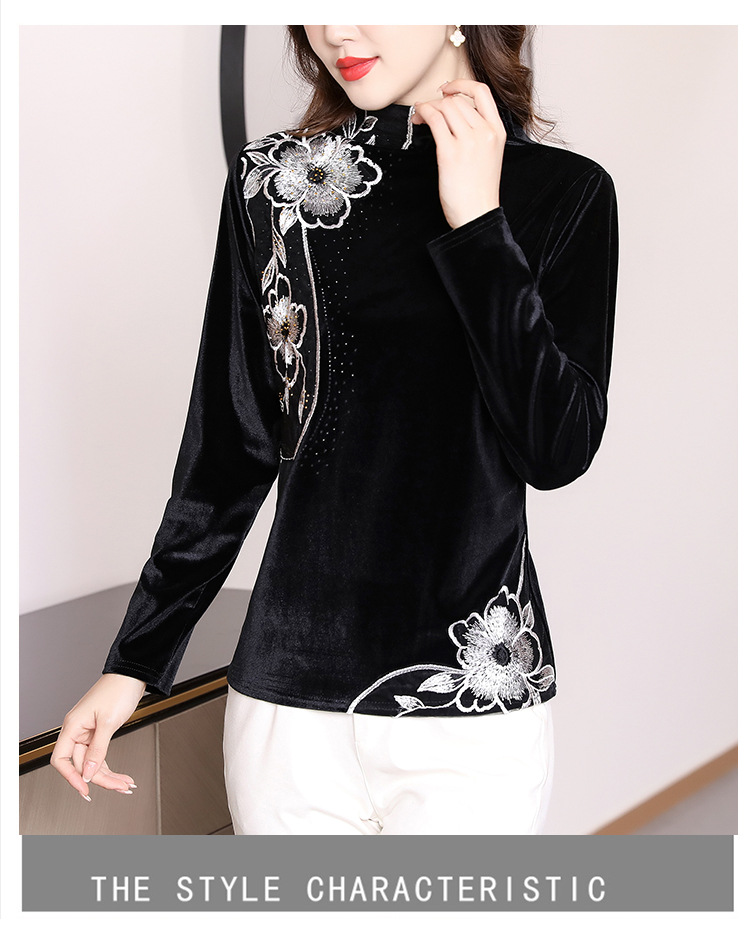 2023 가을과 겨울 새로운 하이넥 자수 베이스 셔츠 한국 슬림핏 따뜻한 내부 벨벳 웨스턴 스타일 티셔츠 탑스토어 가기