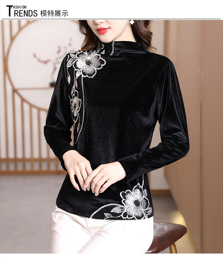 2023 가을과 겨울 새로운 하이넥 자수 베이스 셔츠 한국 슬림핏 따뜻한 내부 벨벳 웨스턴 스타일 티셔츠 탑