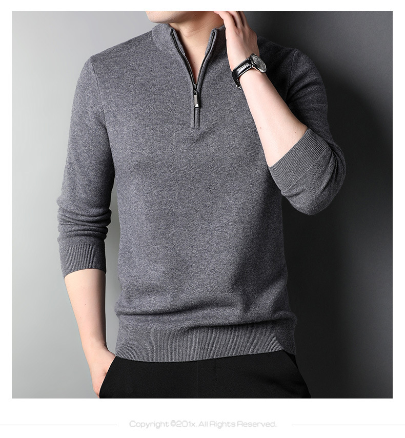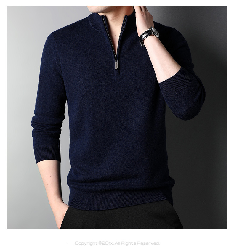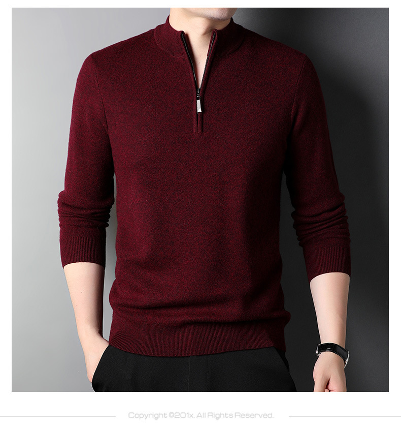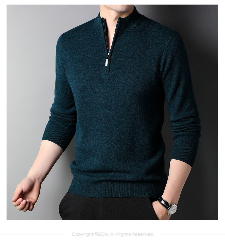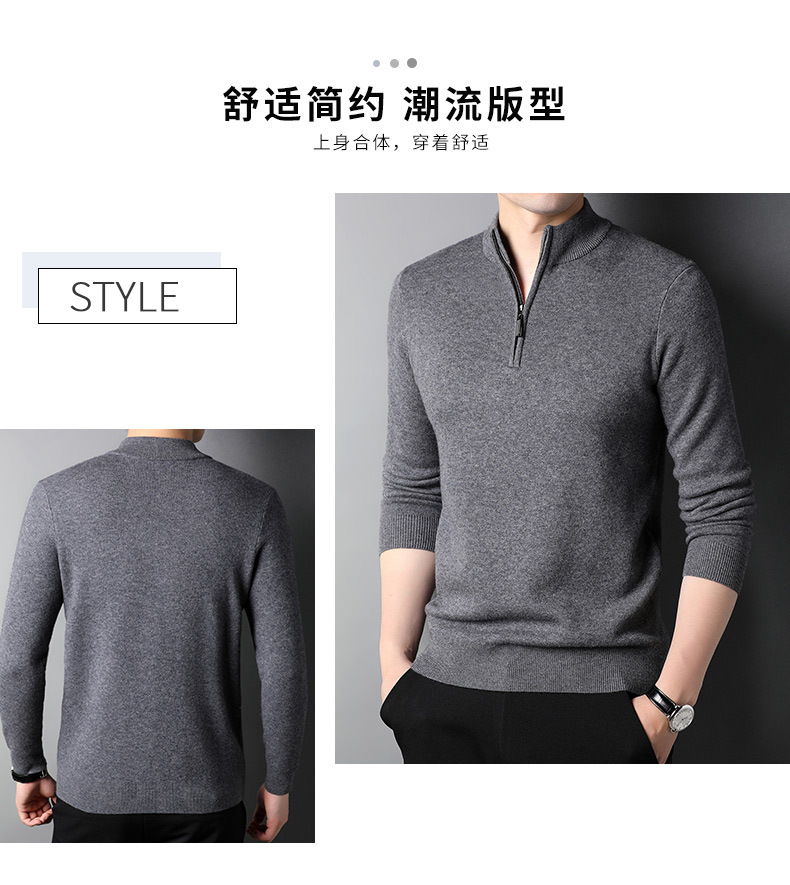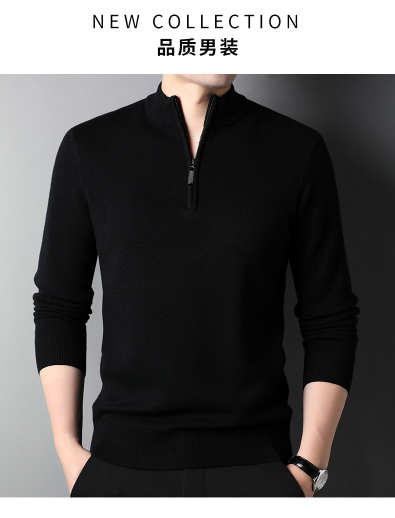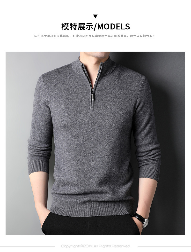 Hengyuanxiang 두꺼운 100 울 스웨터 남성용 2023 가을과 겨울 새로운 간단한 지퍼 하프 터틀넥 스웨터