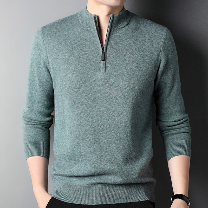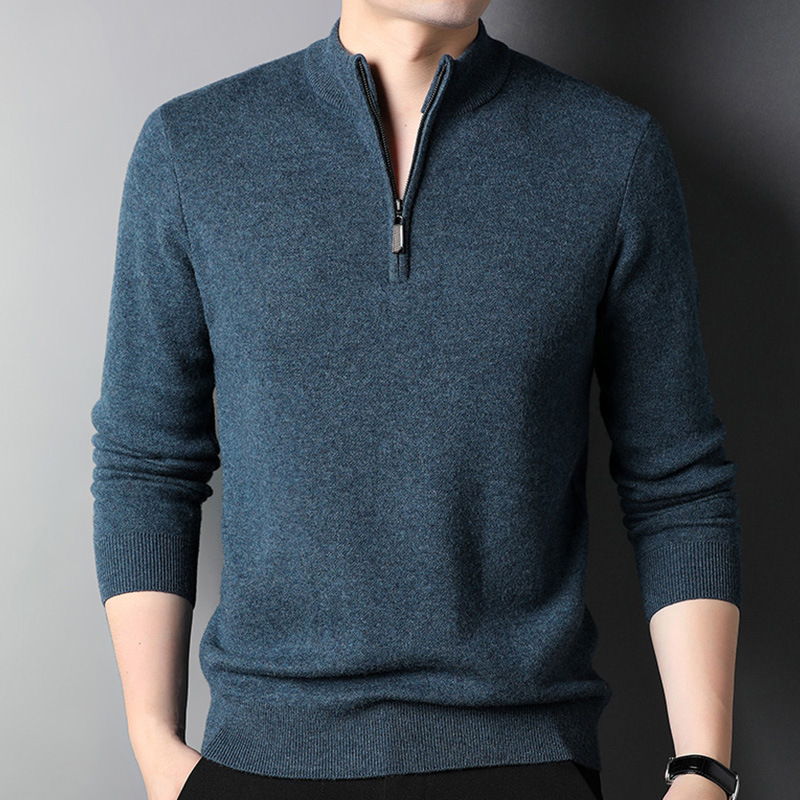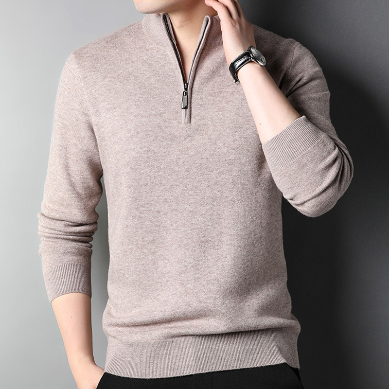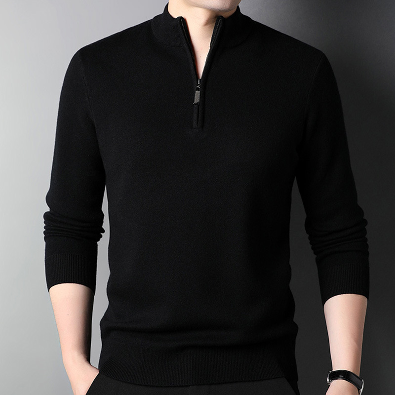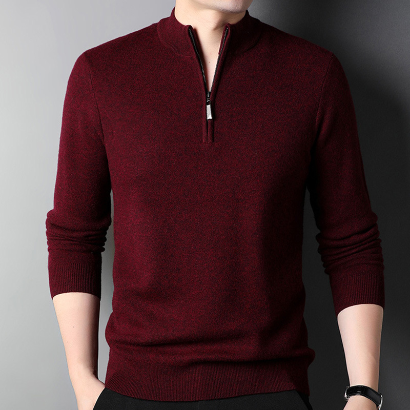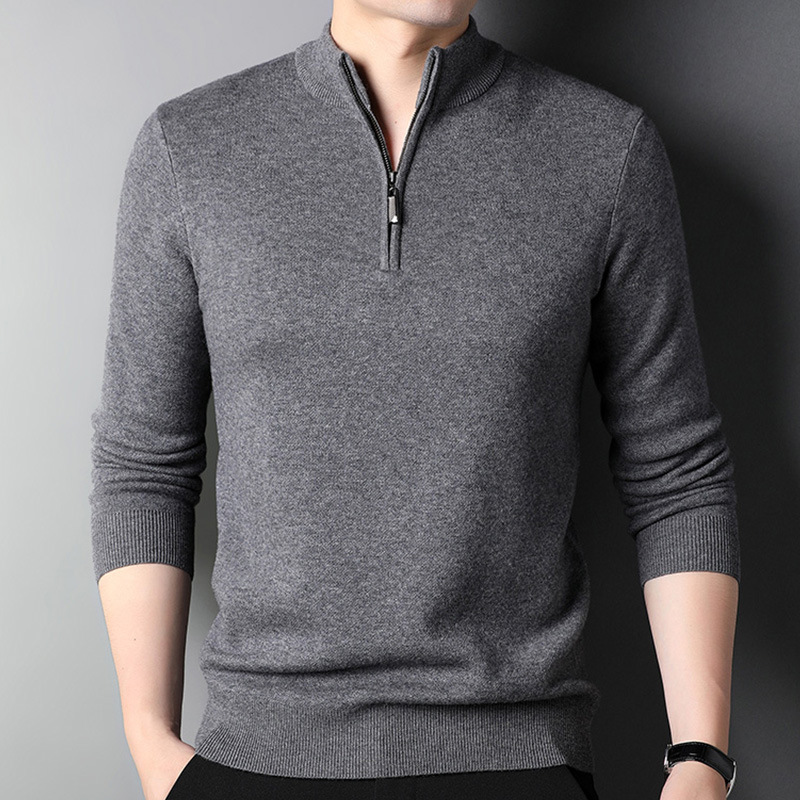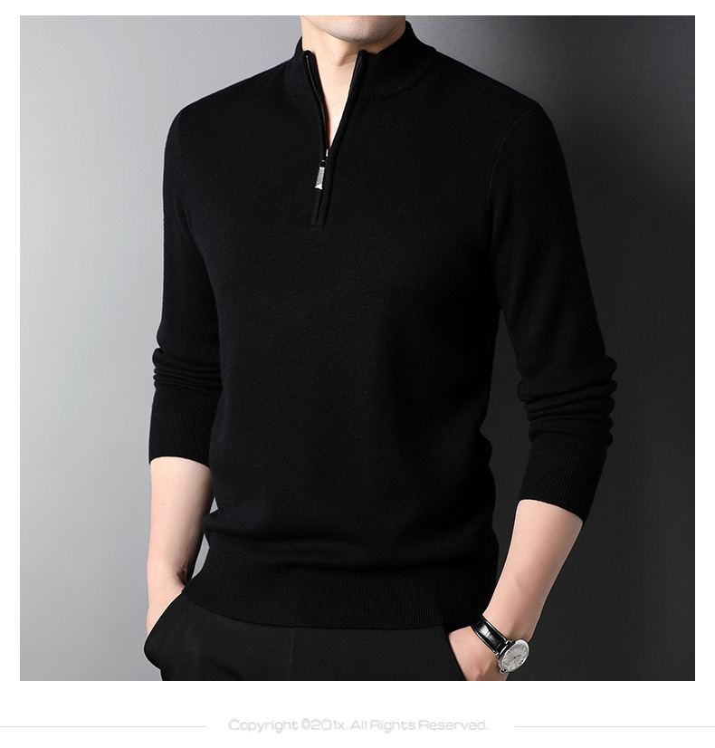 Hengyuanxiang 두꺼운 100 울 스웨터 남성용 2023 가을과 겨울 새로운 간단한 지퍼 하프 터틀넥 스웨터