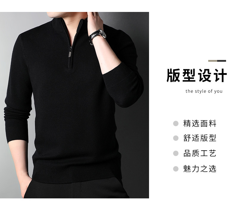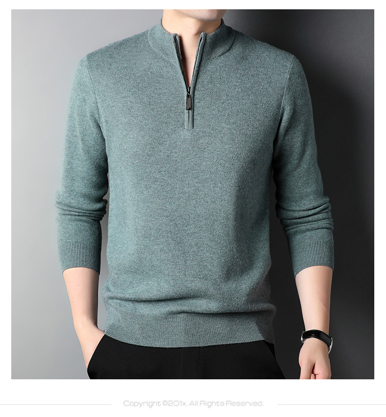 Hengyuanxiang 두꺼운 100 울 스웨터 남성용 2023 가을과 겨울 새로운 간단한 지퍼 하프 터틀넥 스웨터스토어 가기