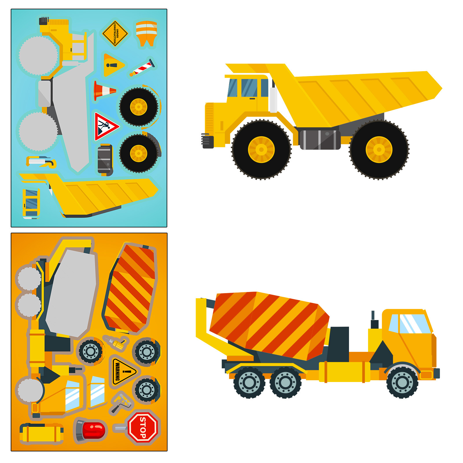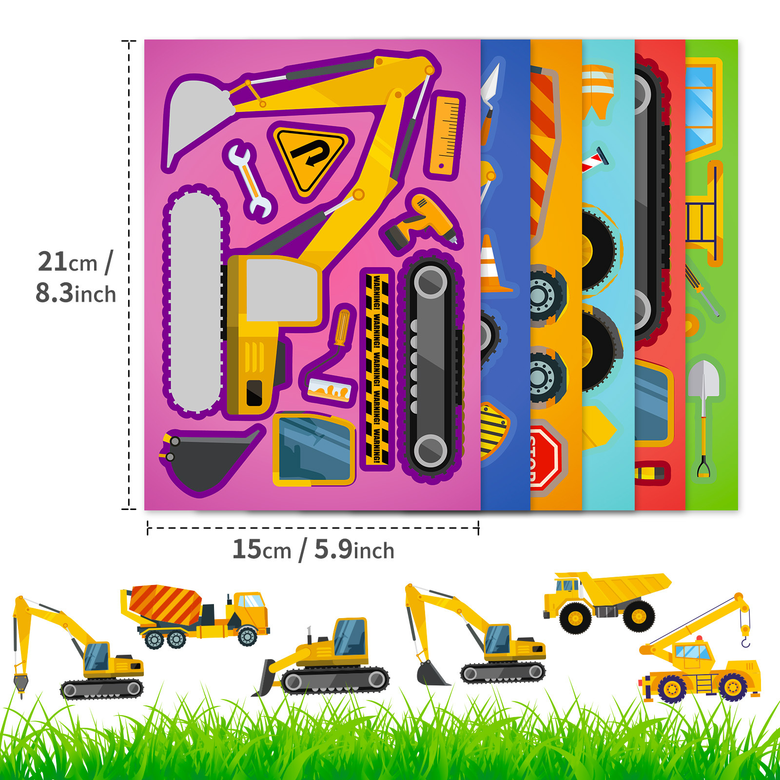 6 매/팩 엔지니어링 트럭 DIY 얼굴 변경 스티커 국경 간 새로운 엔지니어링 트럭 어린이 낙서 퍼즐 스티커