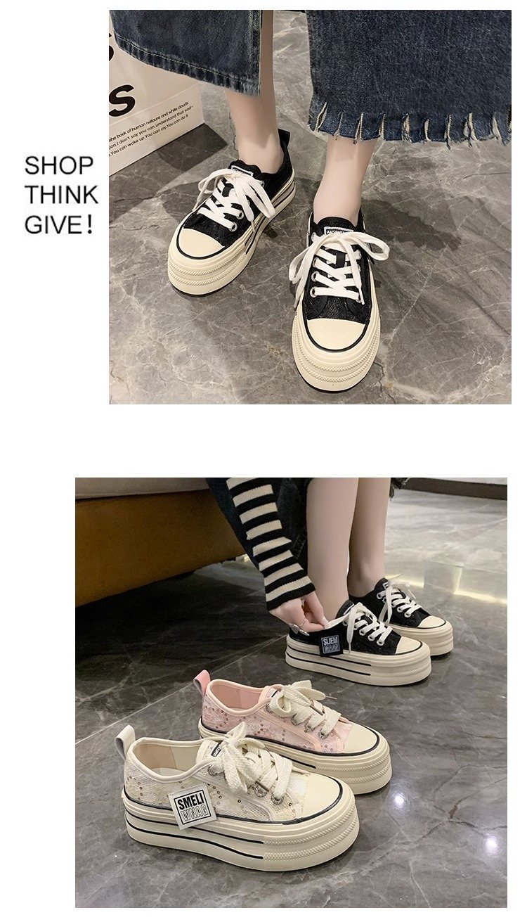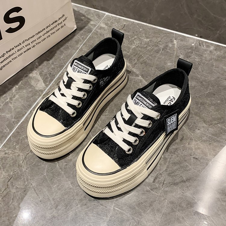 여성 캔버스 신발 2023 여름 새로운 메쉬 통기성 높이 증가 여성 신발, 트렌디 한 여성 캐주얼 스포츠 흰색 신발스토어 가기