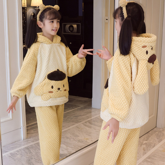 대외 무역 겨울 새로운 어린이 잠옷 기모 두꺼운 후드 소년과 소녀 후드 가정 옷 세트