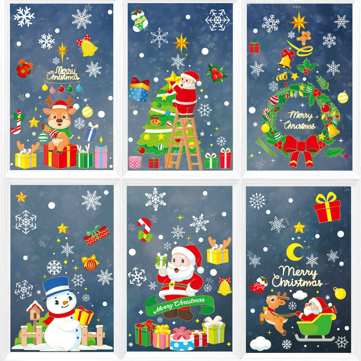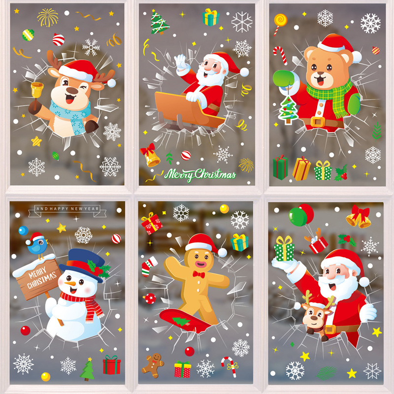 크리스마스 스티커 크리스마스 아마존 새로운 정적 스티커 상점 창 눈사람 산타 클로스 장식 스티커