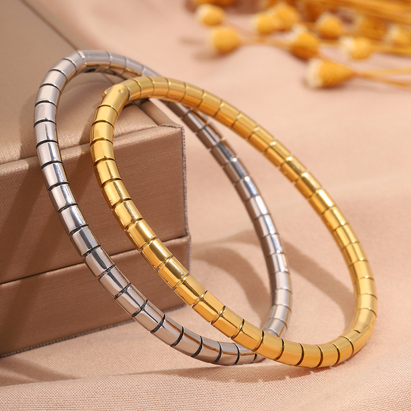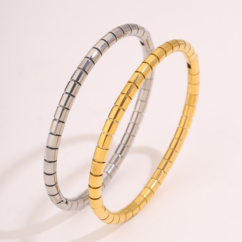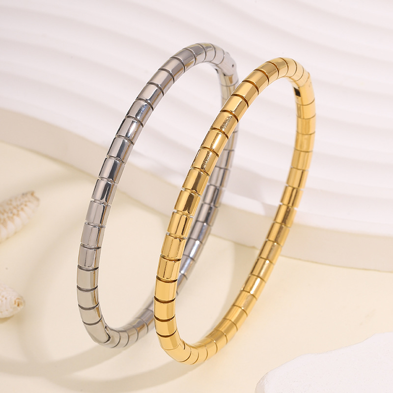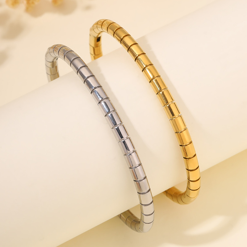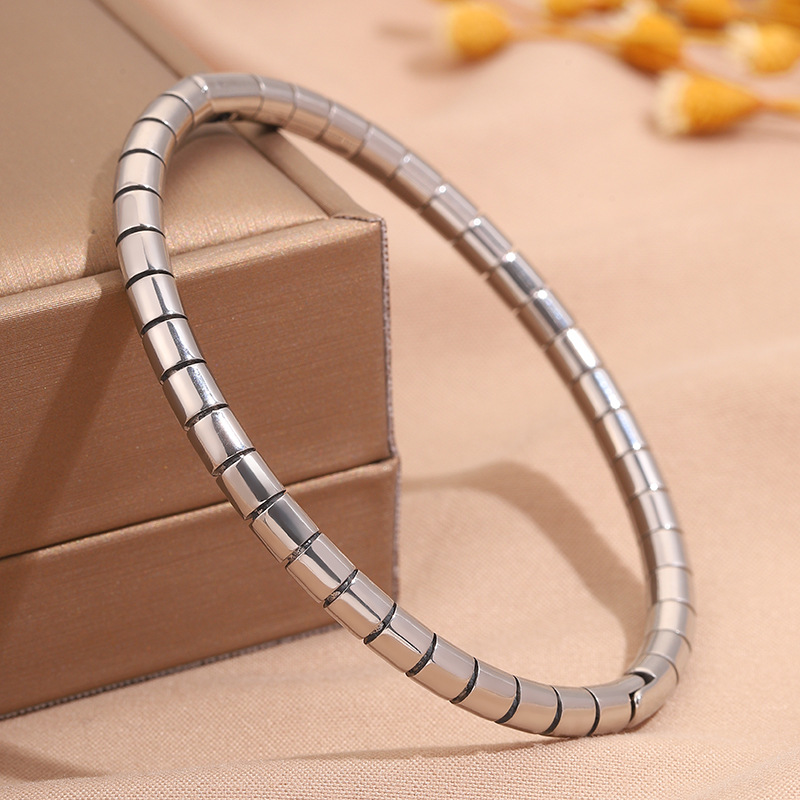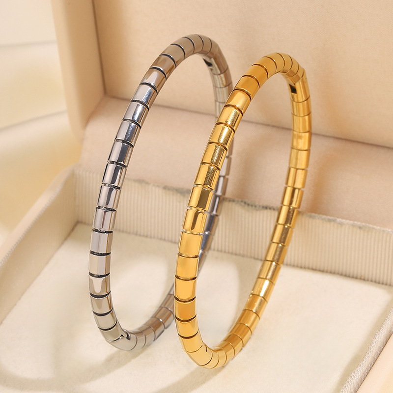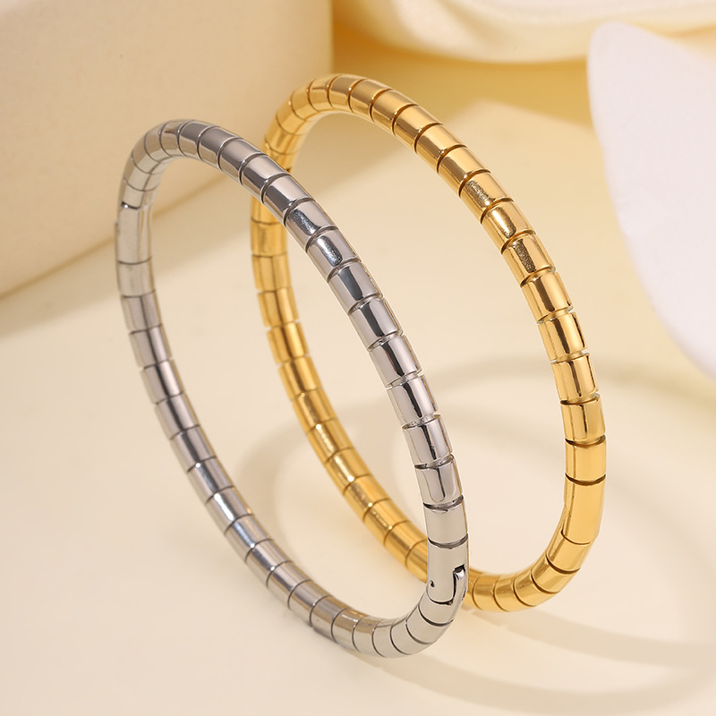 2023 새로운 국경 간 폭발 스테인레스 스틸 라운드 뱀 대나무 팔찌 도매 조커 통근 패션 성격 여자 친구를 보내스토어 가기