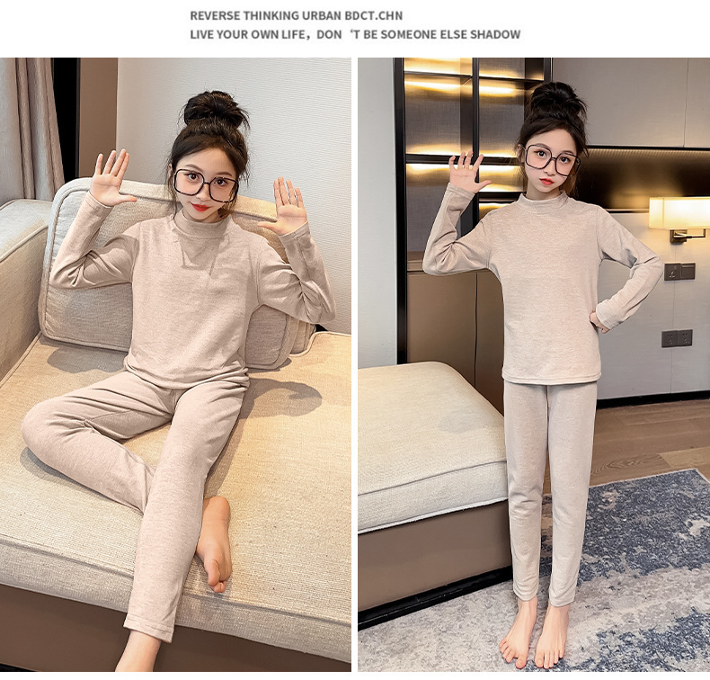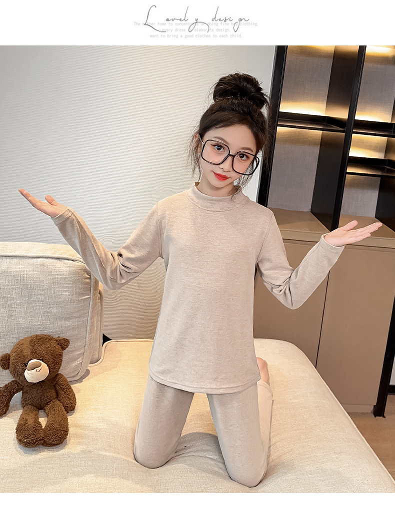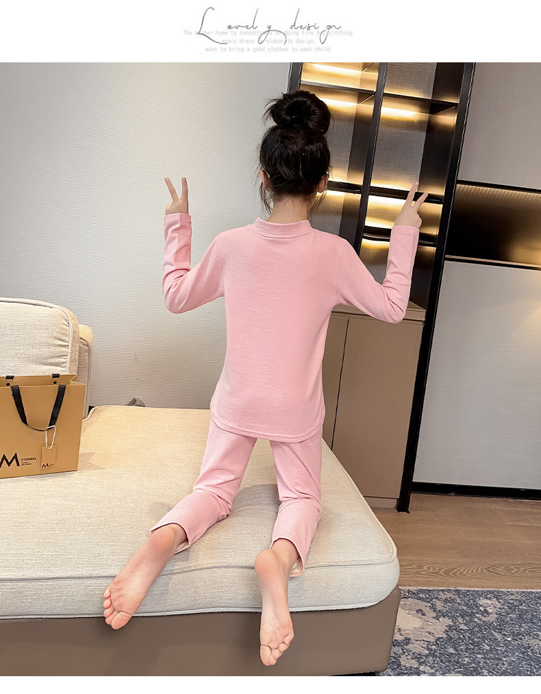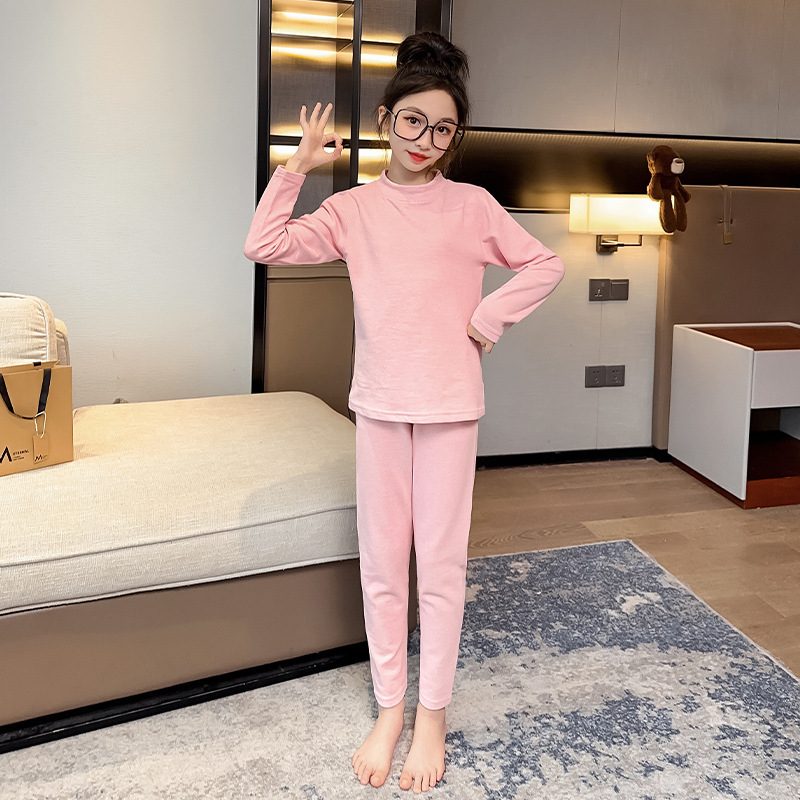 가을 겨울 2023 세트 여아 가정복 잠옷 어린이와 소녀를 위한 새로운 슬림핏 열 속옷 투피스 세트