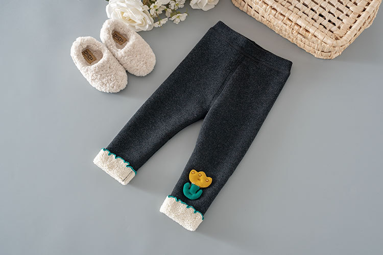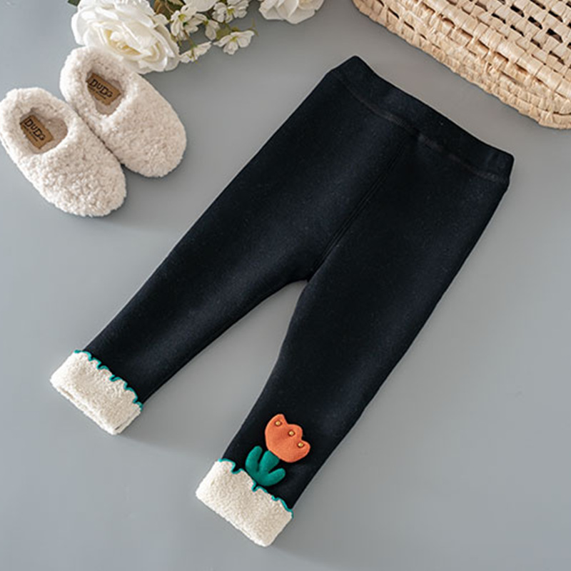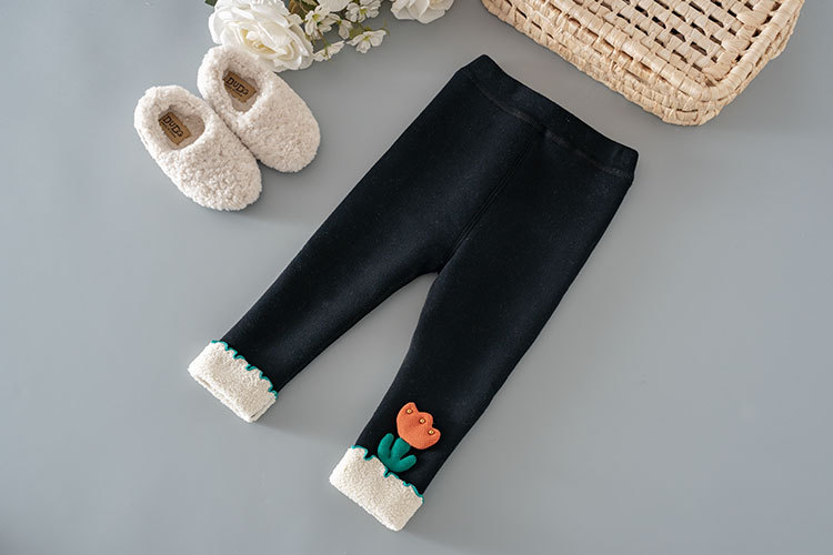 여아 기모 레깅스 가을/겨울 2023 신상품 아동용 두꺼운 원피스 벨벳 웜 팬츠 베이비 웨어 블랙