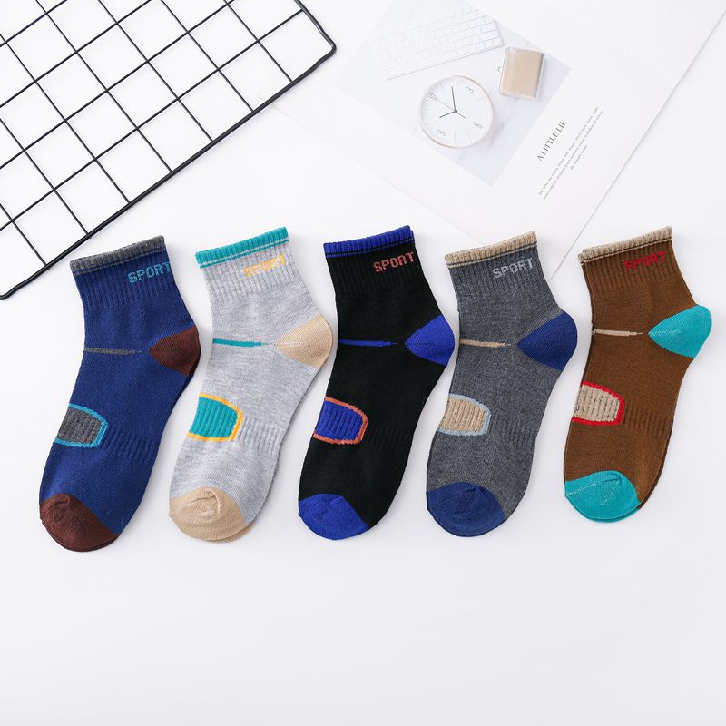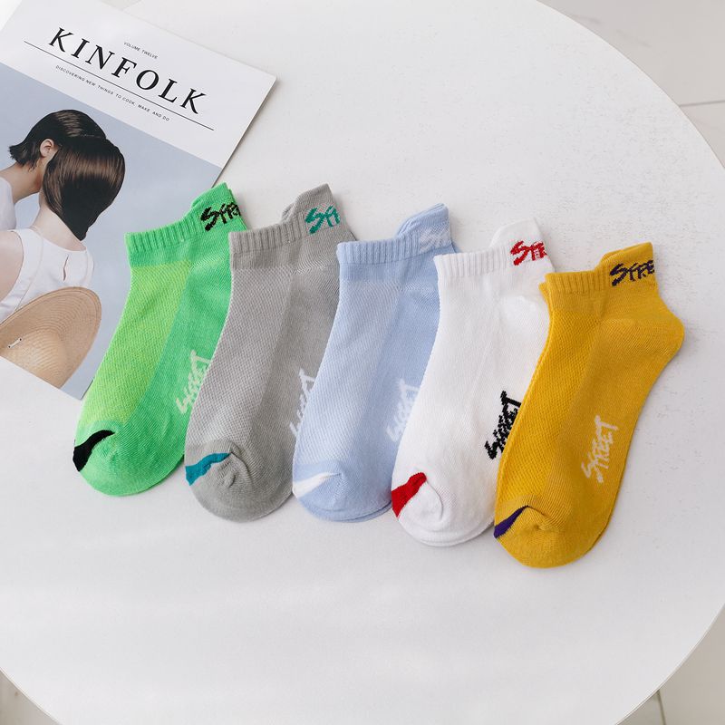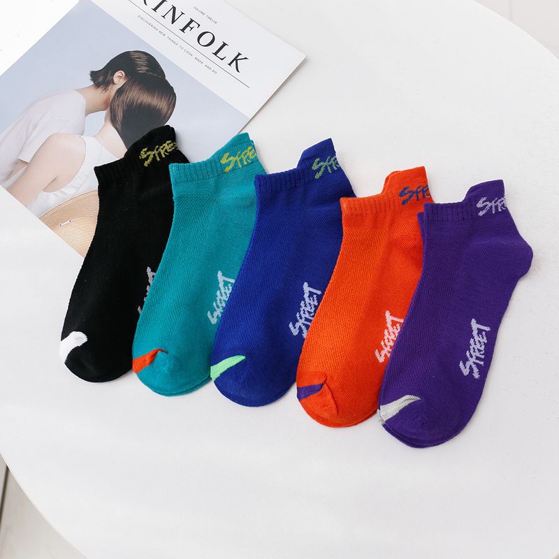 양말 남성용 미드 튜브 양말 봄과 여름 새로운 짧은 튜브 보트 양말 땀 흡수 남성 스포츠 얕은 입 로우 탑 보이지 않는 양말 5 쌍