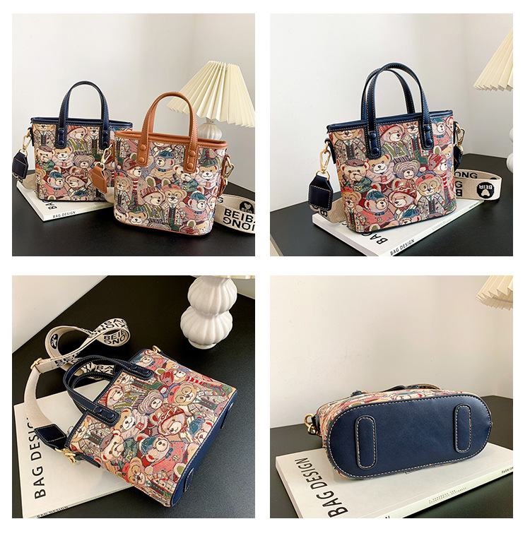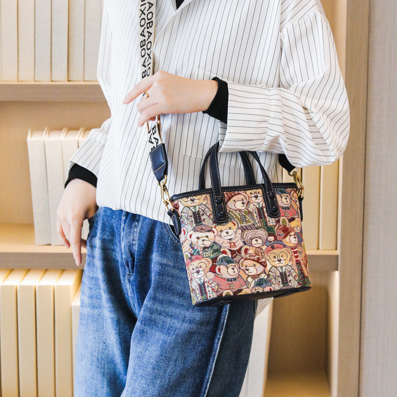 베어 프린트 백 여성 가방 유행 모든 매치 숄더 크로스 바디 백 귀여운 겨드랑이 가방 절묘한 핸드백 토트 백