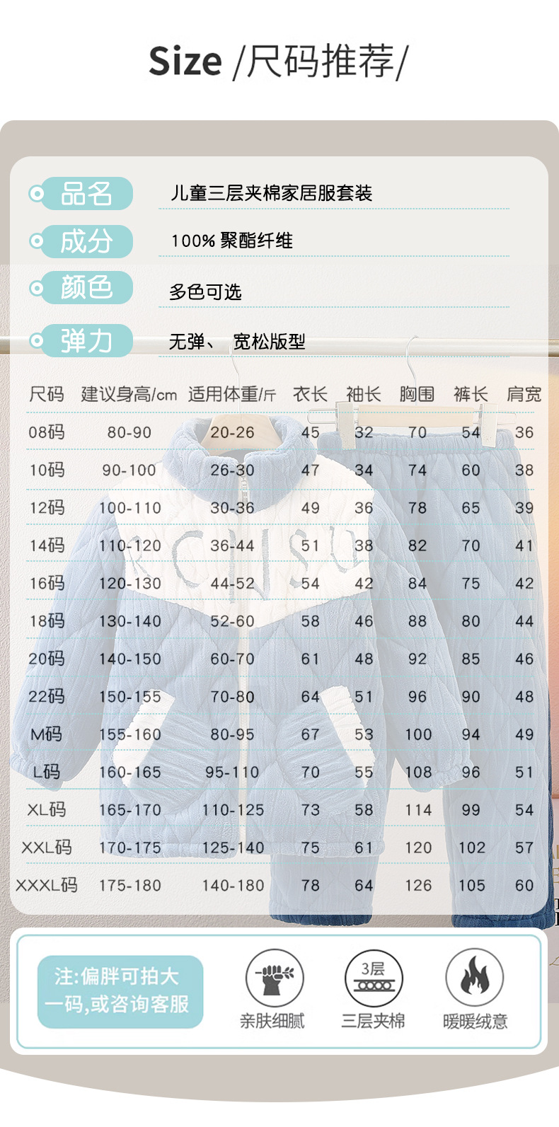 겨울 어린이 3 층면 두꺼운 플란넬 아기 소년 십대는 가정복을 입을 수 있습니다 산호 양털