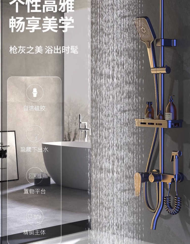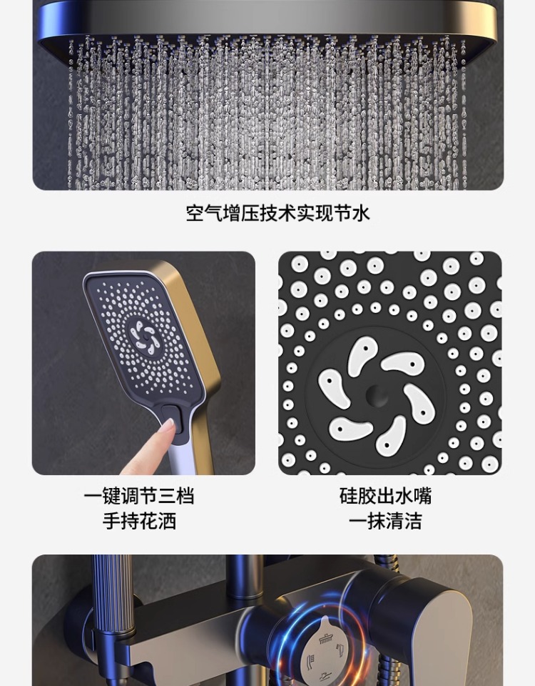 샤워 헤드 세트 가정용 욕실 샤워 헤드 비 샤워 가압 노즐 표면 장착 일정 온도 샤워 헤드