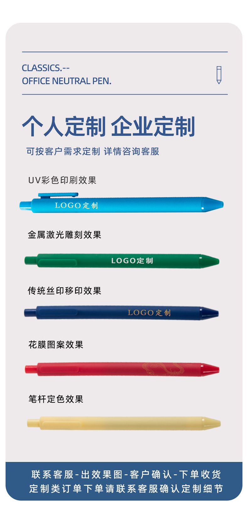 【发货速度】不印刷的中性笔,一般1-2天就可以出货。印刷LOGO的笔按数量来定,一般(1-5天)就能出货。本店推出快速出货服务,急单可联系客服处理!