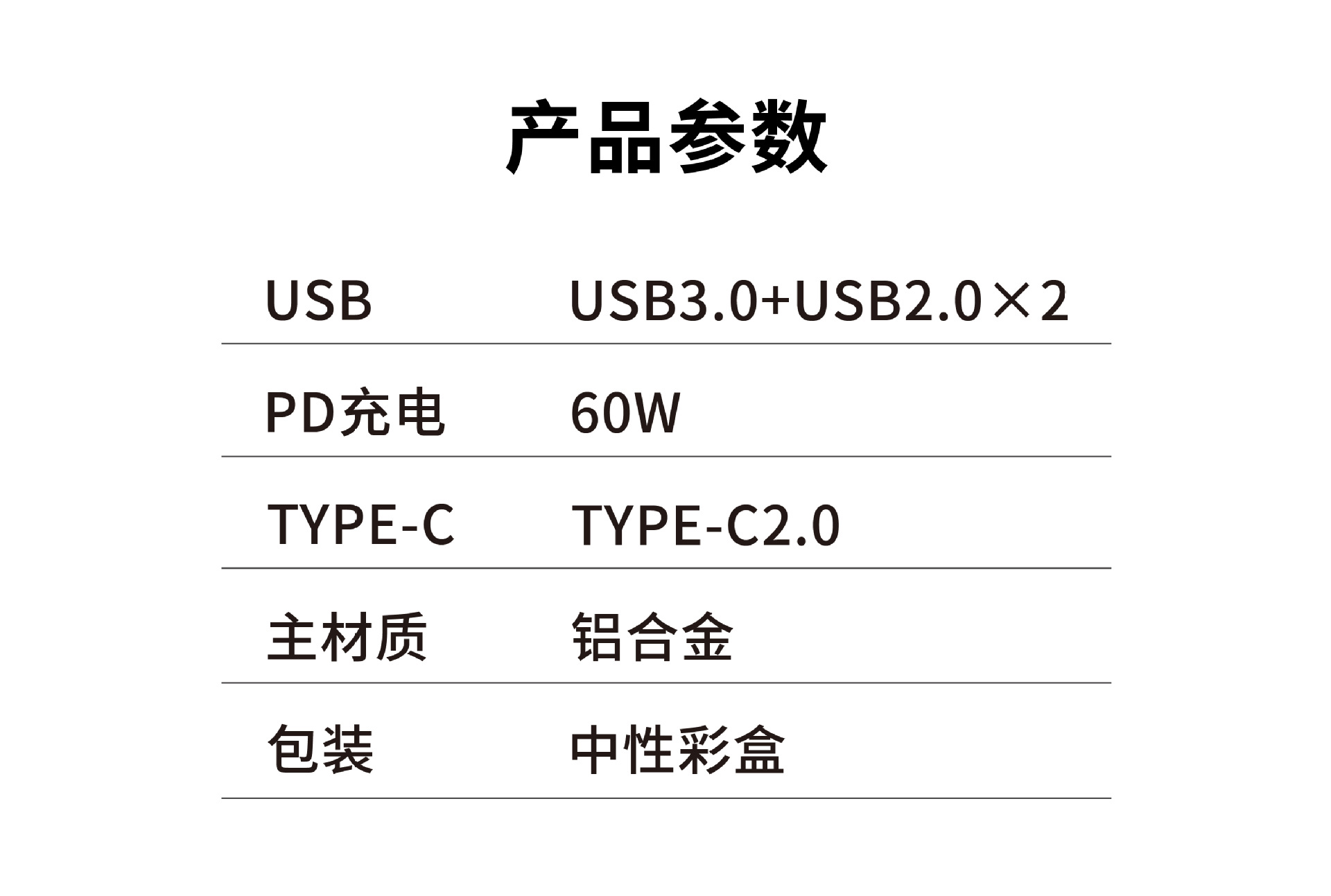 • usb3.0+usb2.0×2+type-c+pd 60w