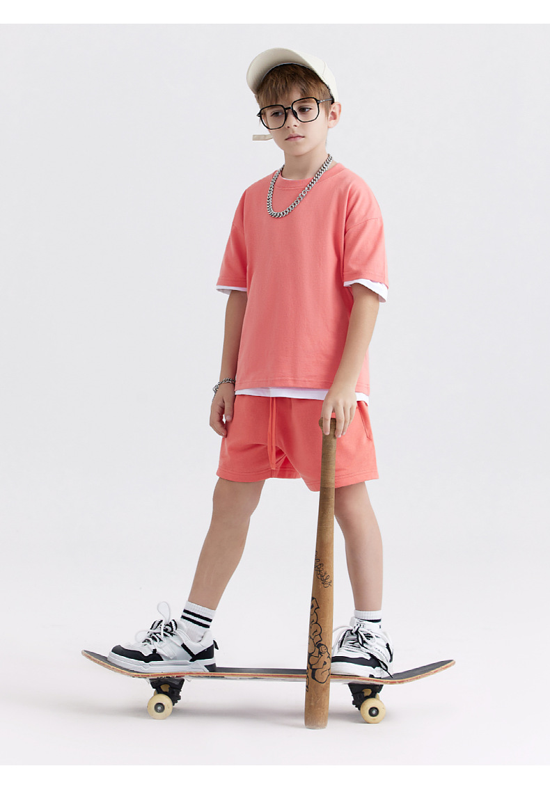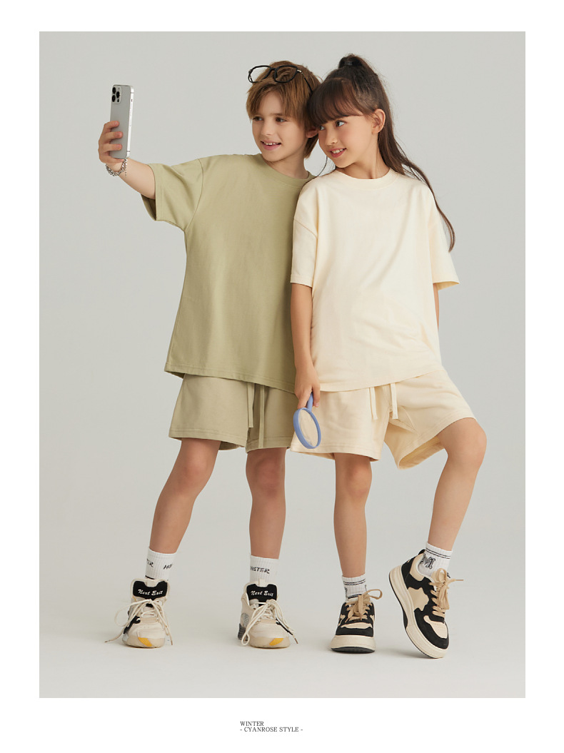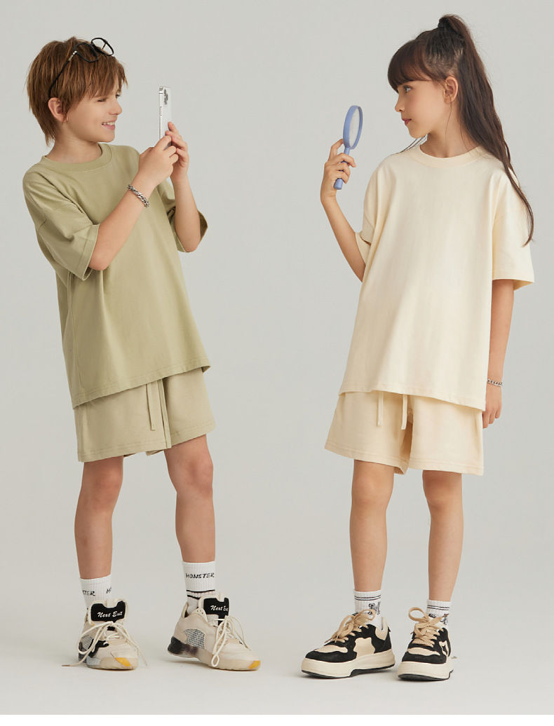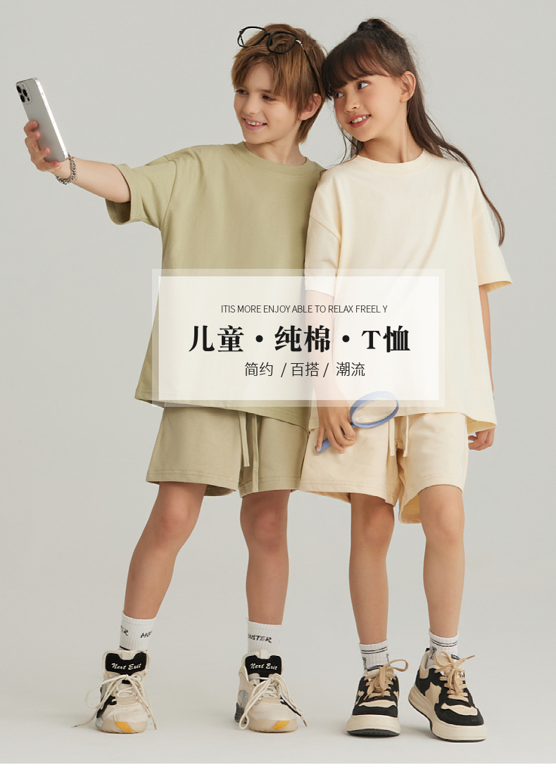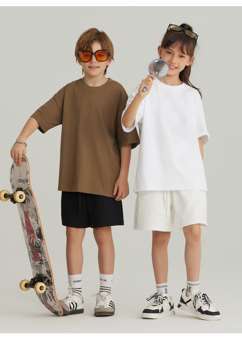 LVLV 아동복 | 헤비 아메리칸 크로스 보더 퓨어 코튼 아동용 반팔 티셔츠 학생복 청소년 트렌디 브랜드 탑 FOG스토어 가기