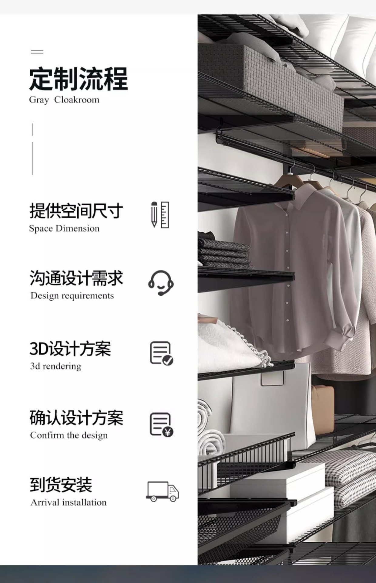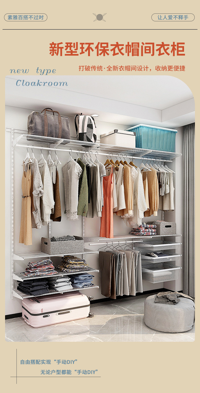 Baituo 워크 인 금속 옷장 보관소 벽 프레임 소규모 아파트 오픈 옷장 보관 랙
