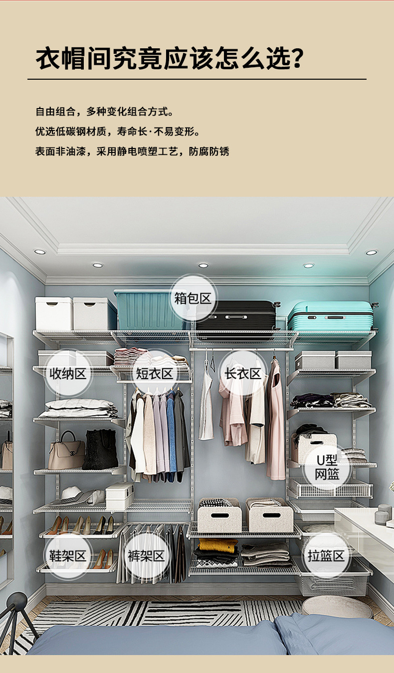 Baituo 워크 인 금속 옷장 보관소 벽 프레임 소규모 아파트 오픈 옷장 보관 랙스토어 가기