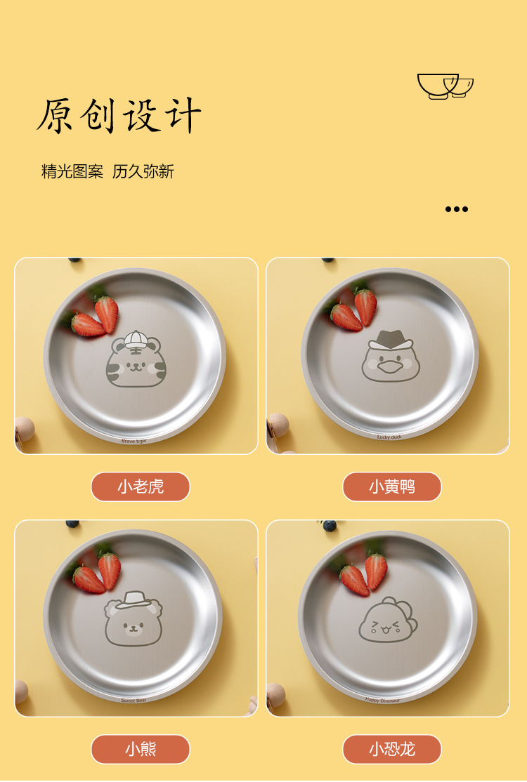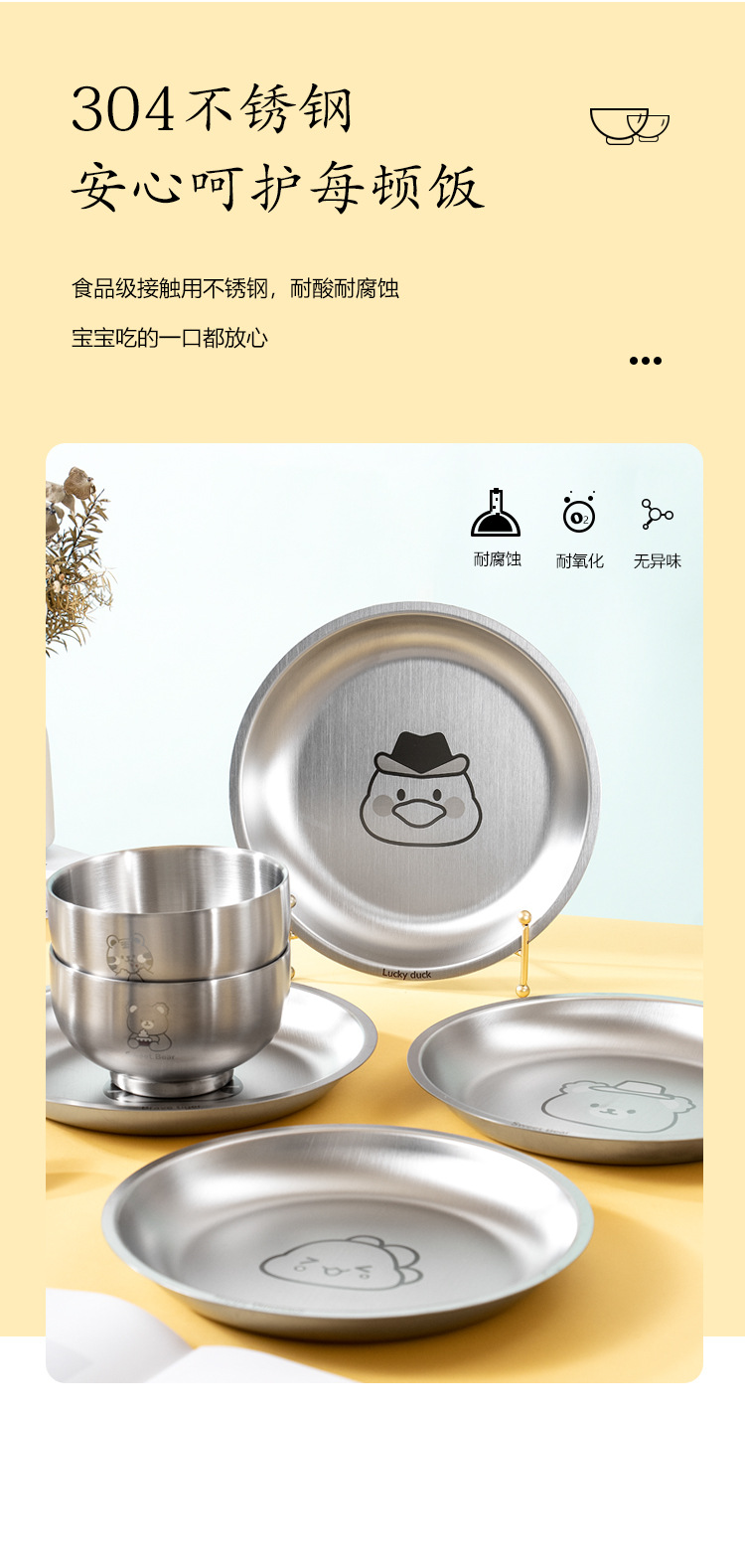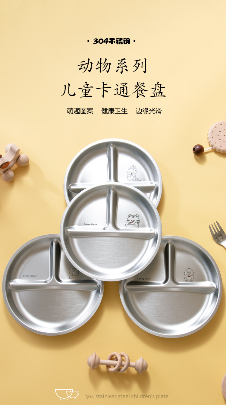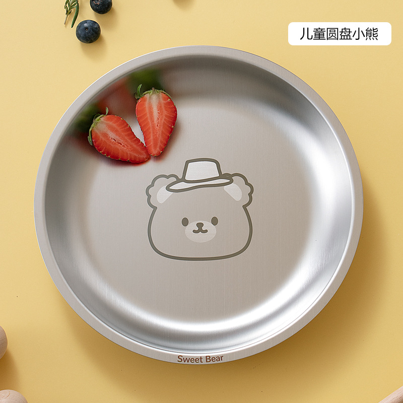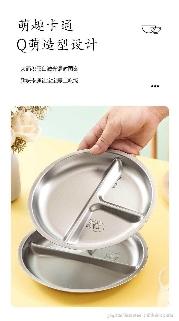 304 스테인레스 스틸 어린이 만화 접시 귀여운 귀여운 재미 두꺼운 접시 컬러 레이저 비 페이딩 플레이트스토어 가기