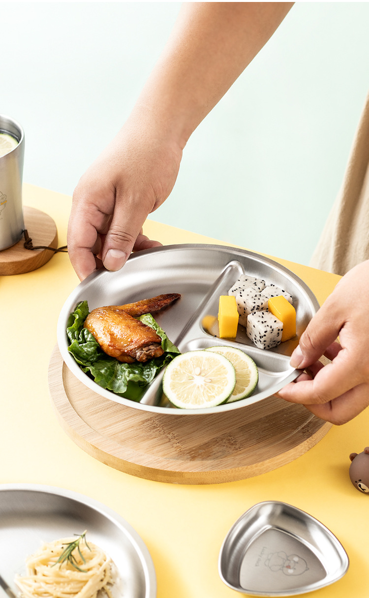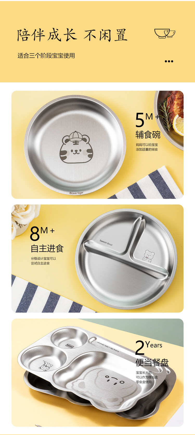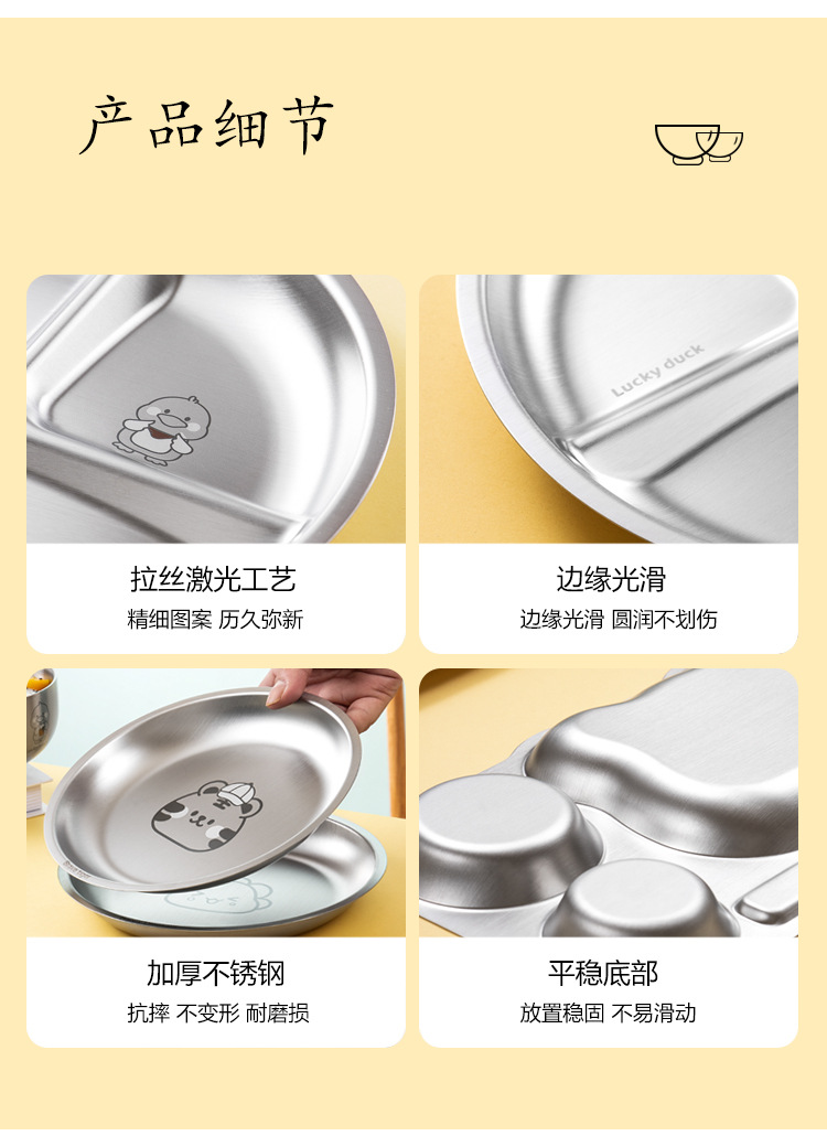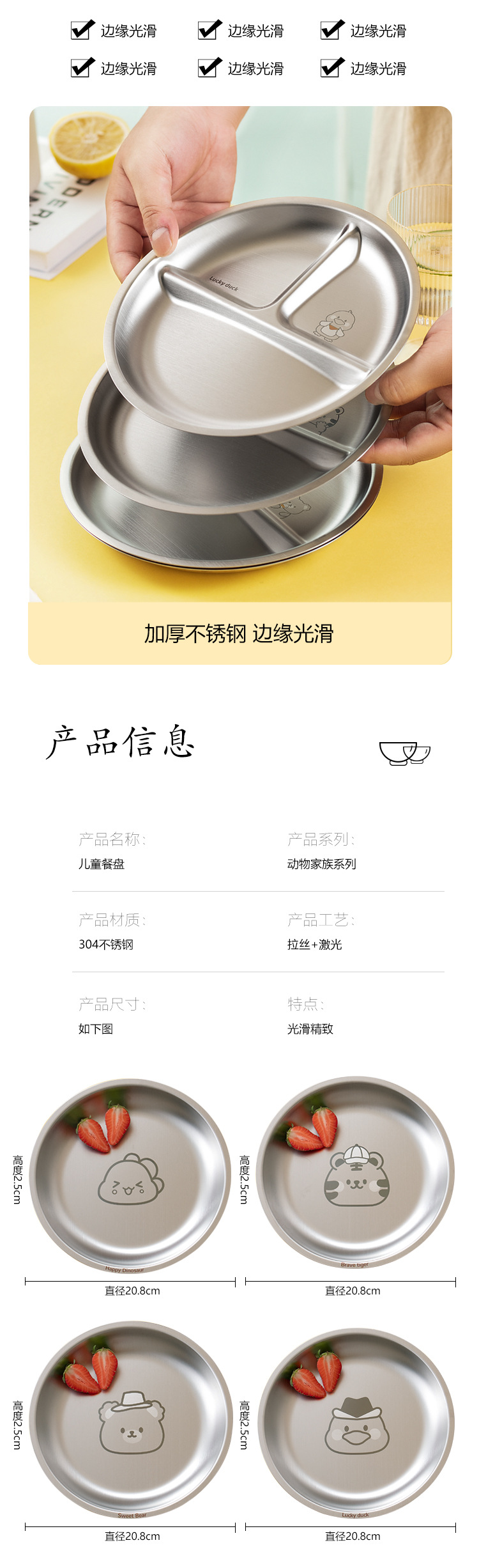 304 스테인레스 스틸 어린이 만화 접시 귀여운 귀여운 재미 두꺼운 접시 컬러 레이저 비 페이딩 플레이트스토어 가기