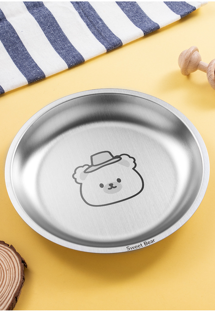 304 스테인레스 스틸 어린이 만화 접시 귀여운 귀여운 재미 두꺼운 접시 컬러 레이저 비 페이딩 플레이트