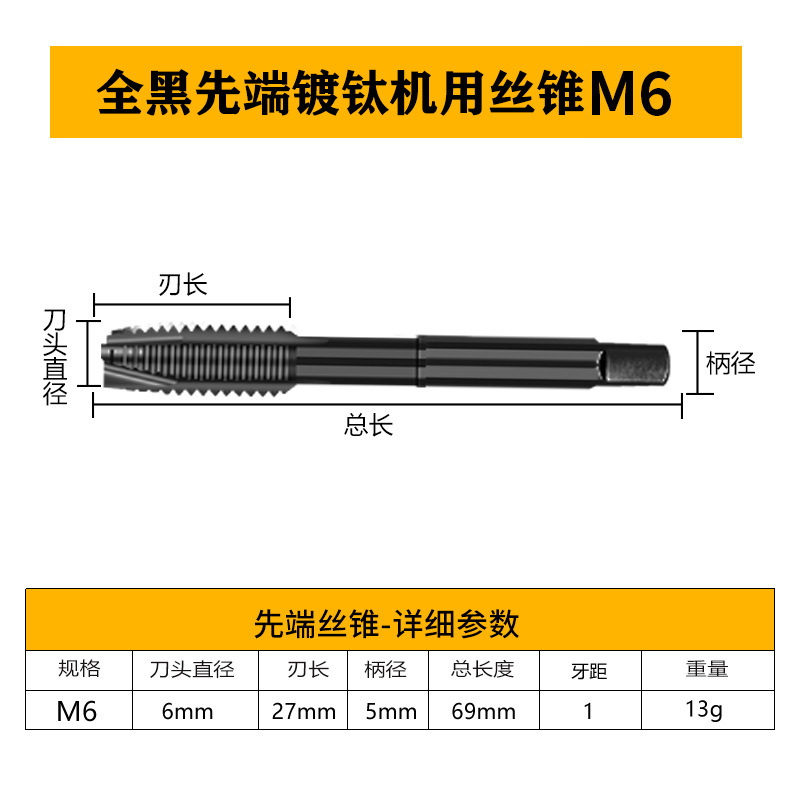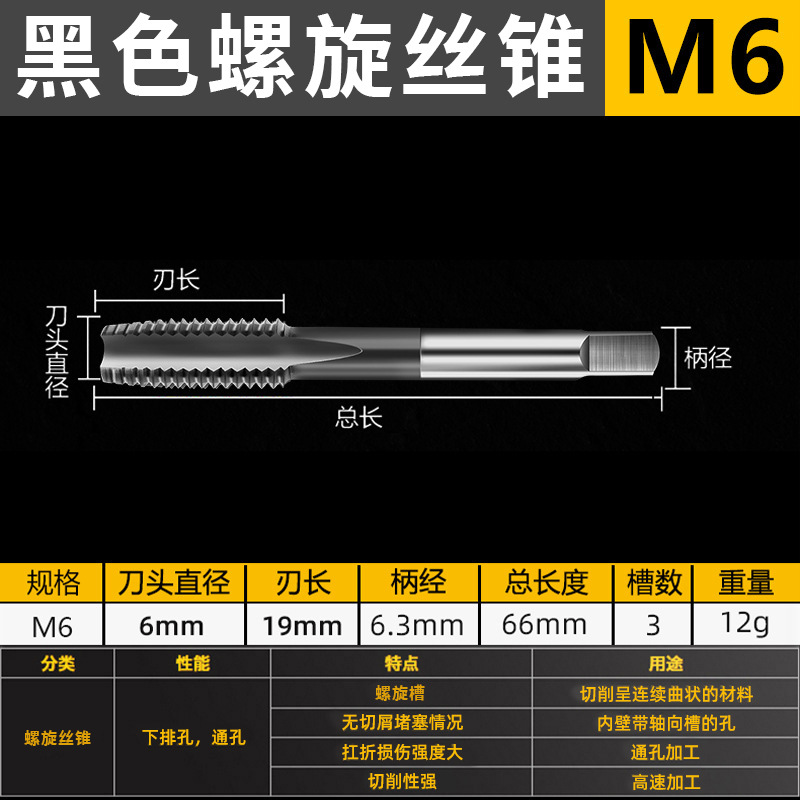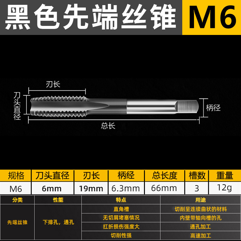 • 코발트 함유 블랙 팁 기계 탭 M6
