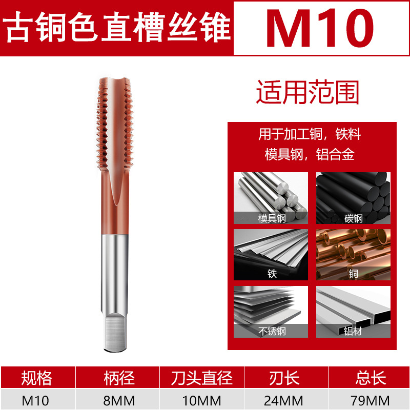 • 코발트 함유 청동 스트레이트 홈 기계 탭 M10