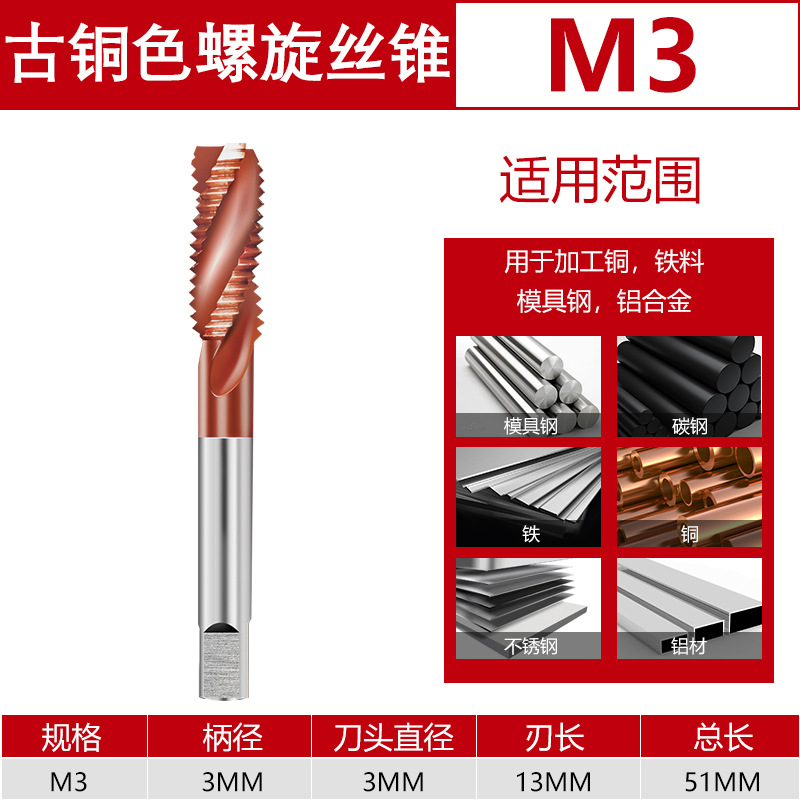 • 코발트 함유 청동 나선형 기계 탭 M3