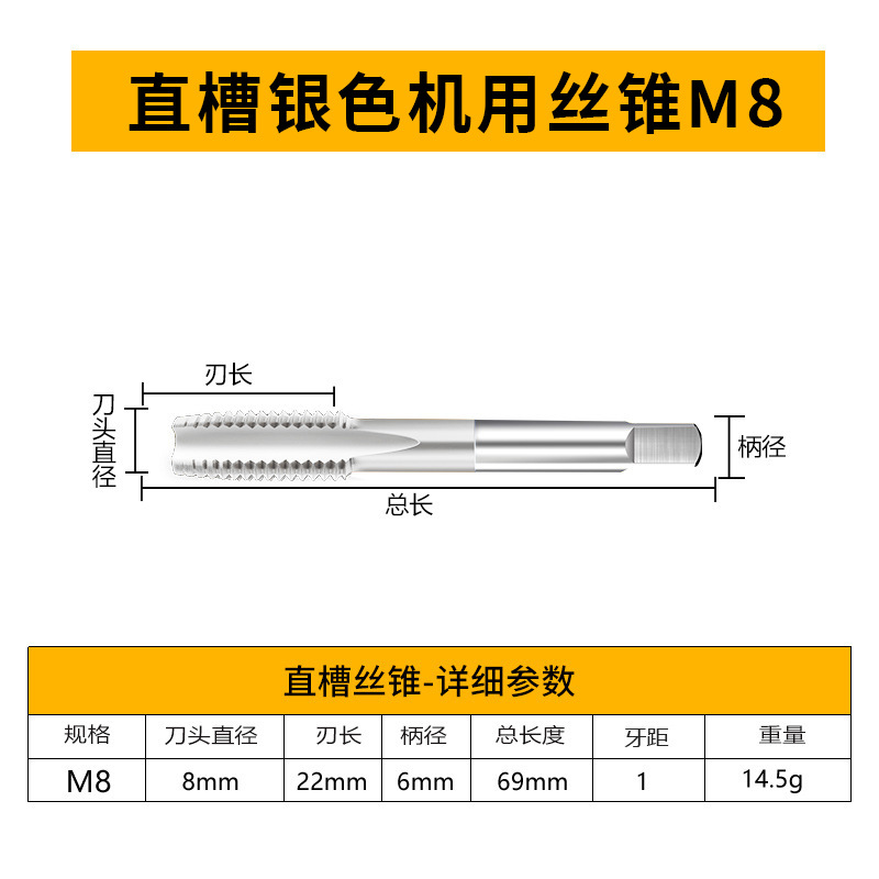 • 코발트 함유 청동 스트레이트 홈 기계 탭 M8