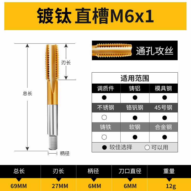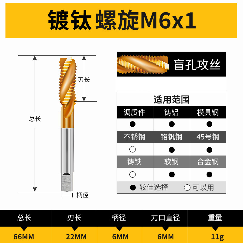 • 코발트 함유 티타늄 도금 나사 탭 M6