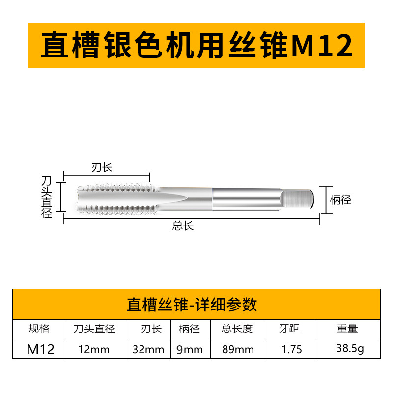 • 코발트 함유 티타늄 도금 스트레이트 홈 기계 탭 M12