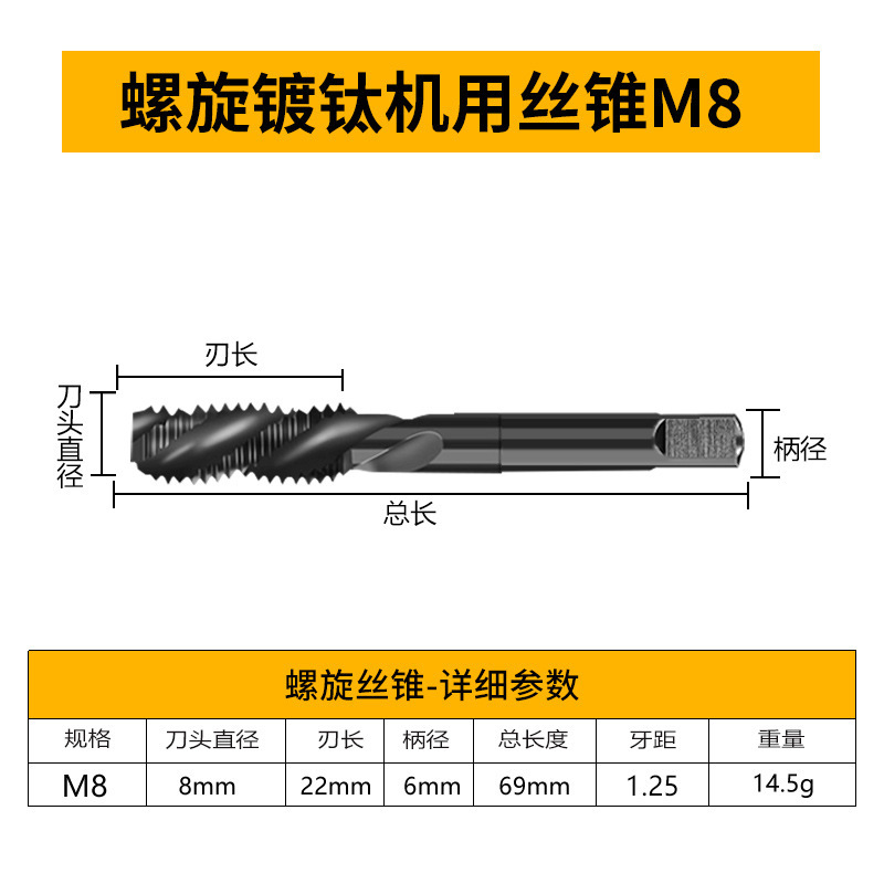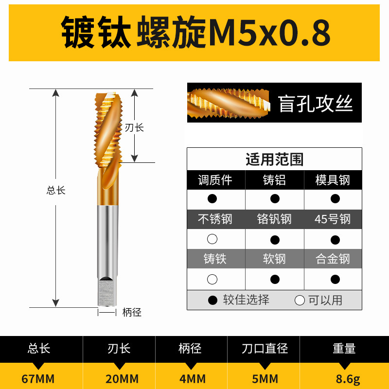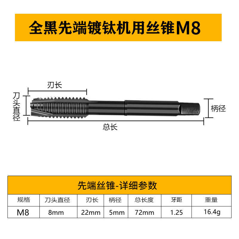 • 코발트 함유 티타늄 도금 나사 탭 M8