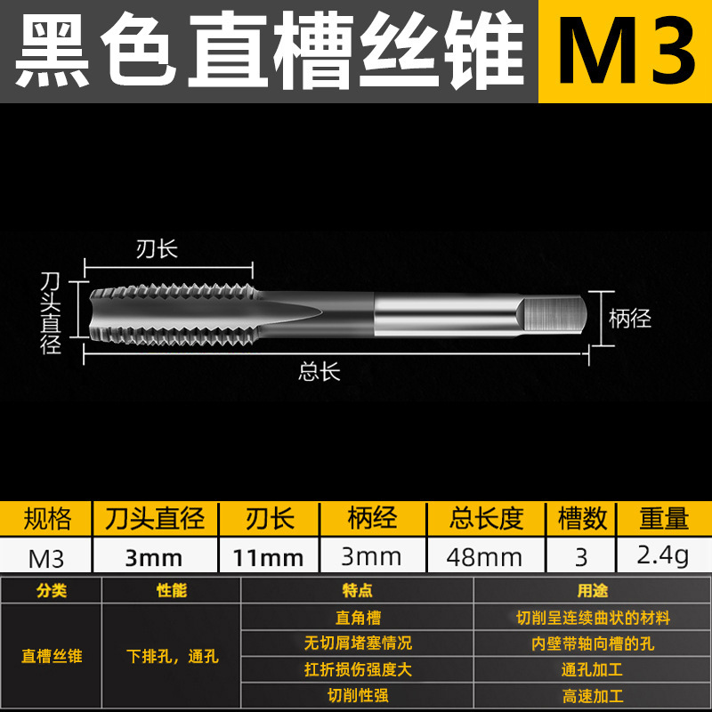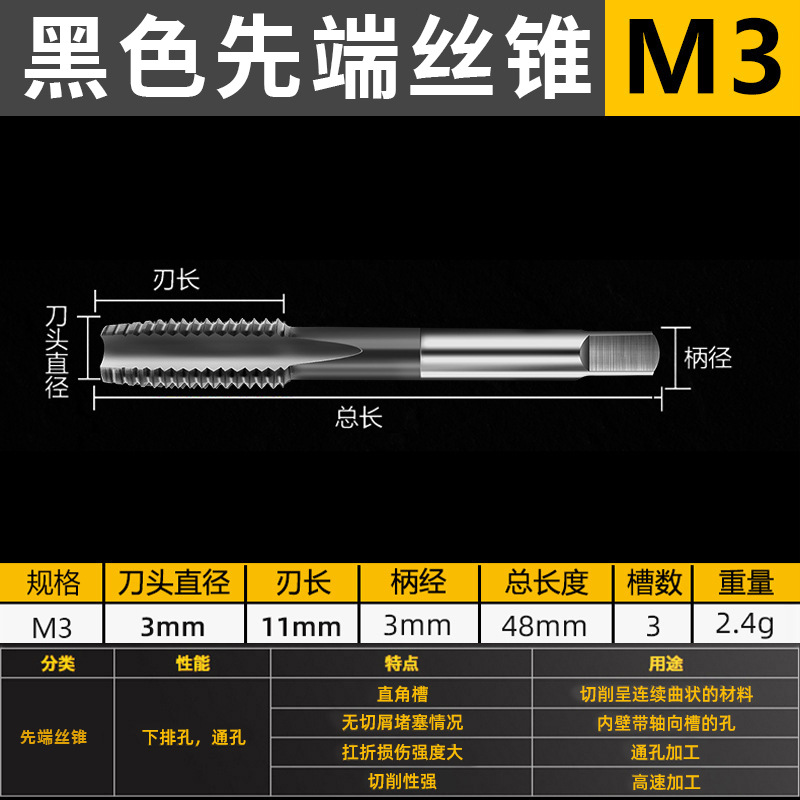 • 코발트 포함 풀 블랙 팁 기계 탭 M3