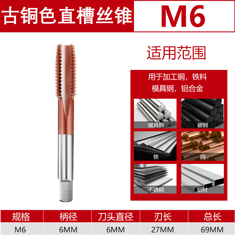 • 코발트 함유 청동 스트레이트 홈 기계 탭 M6