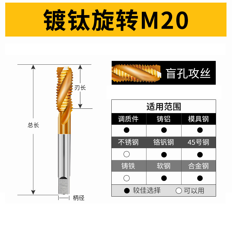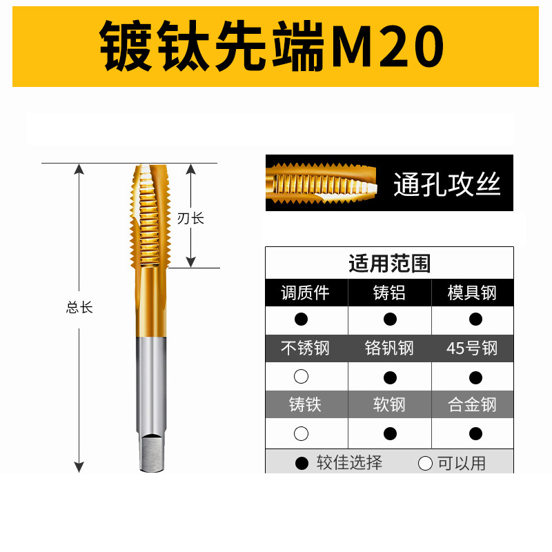 • 코발트 함유 티타늄 도금 나사 탭 M20