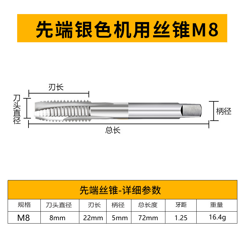 • 코발트 함유 티타늄 도금 팁 기계 탭 M8