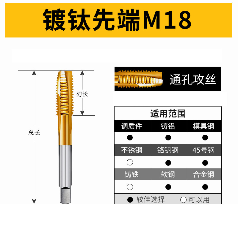 • 코발트 함유 티타늄 도금 나사 탭 M18