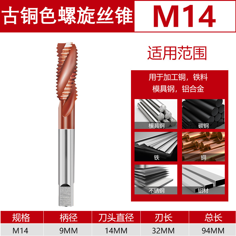 • 코발트 함유 청동 나선형 기계 탭 M14