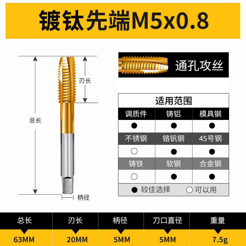 • 코발트 함유 티타늄 도금 나사 탭 M5